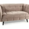 Sofa, tkanina aksamit: Bluvel 40 – ciemny beżowy / drewno, kolor: wenge. Wymiary sofy: A – 78, B – 145, C – 43, D – 60, E – 85, F – 12 cm.