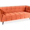 Sofa, tkanina aksamit: Bluvel 4215 – cynamonowy / drewno, kolor: wenge. Wymiary sofy: A – 78, B – 200, C – 43, D – 60, E – 85, F – 12 cm.