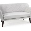 Sofa 2-osobowa, tkanina aksamit, kolor: Bluvel 03 – jasny szary, nóżki drewno, kolor: wenge. Wymiary sofy: A – 76, B – 140, C – 42, D – 54, E – 75, F – 23 cm.