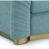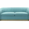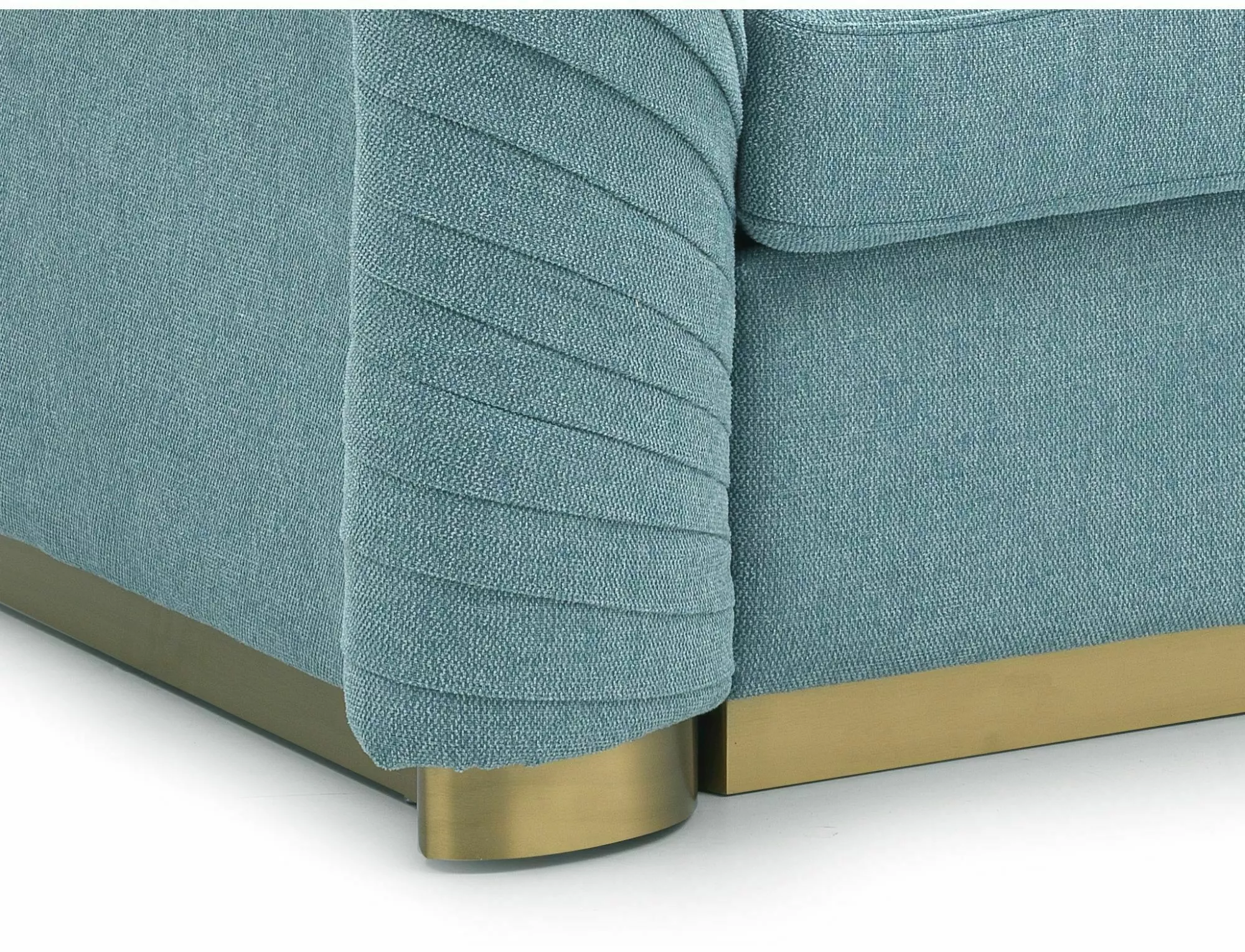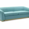Sofa 2-osobowa, tkanina: tap.196 – niebieski / metal, kolor: złoty. Wymiary sofy: A – 72, B – 180, C – 44, D – 62, E – 93, F -1 cm.