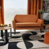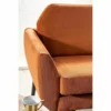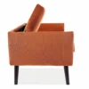 Sofa, tkanina aksamit: Bluvel 4215 – cynamonowy / drewno, kolor: wenge. Wymiary sofy: A – 85, B – 147, C – 52, D – 52, E – 75, F – 23 cm.