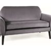 Sofa, tkanina aksamit: Bluvel 14 szary / drewno, kolor: wenge. Wymiary sofy: A – 85, B – 147, C – 52, D – 52, E – 75, F – 23 cm.