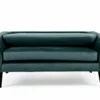 Sofa, tkanina aksamit: Bluvel 78 – zielony / drewno, kolor: wenge. Wymiary sofy: A – 85, B – 147, C – 52, D – 52, E – 75, F – 23 cm.
