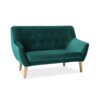 Sofa 2-osobowa, siedzisko tkanina aksamit, kolor: wg próbnika (Bluvel 78 – zielony) / stelaż, drewno bukowe. Wymiary sofy: A – 90, B – 136, C – 42, D – 55, E – 75, F – 18 cm.