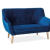 Sofa 2-osobowa, siedzisko tkanina aksamit, kolor: wg próbnika (Bluvel 86 – granatowy) / stelaż, drewno bukowe. Wymiary sofy: A – 90, B – 136, C – 42, D – 55, E – 75, F – 18 cm.