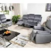 Sofa 3-osobowa z funkcą ro, tapicerka: tkanina aksamit, stelaż: metal, kolor: szary / czarny. Rozkładane dwa skrajne siedzenia, część środkowa nieruchoma. Wymiary sofy: A – 101, B – 193, C – 48, D – 54, E – 94÷164, F – 5 cm.