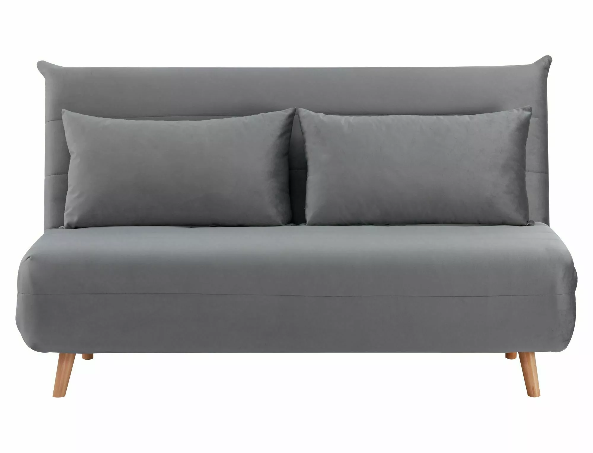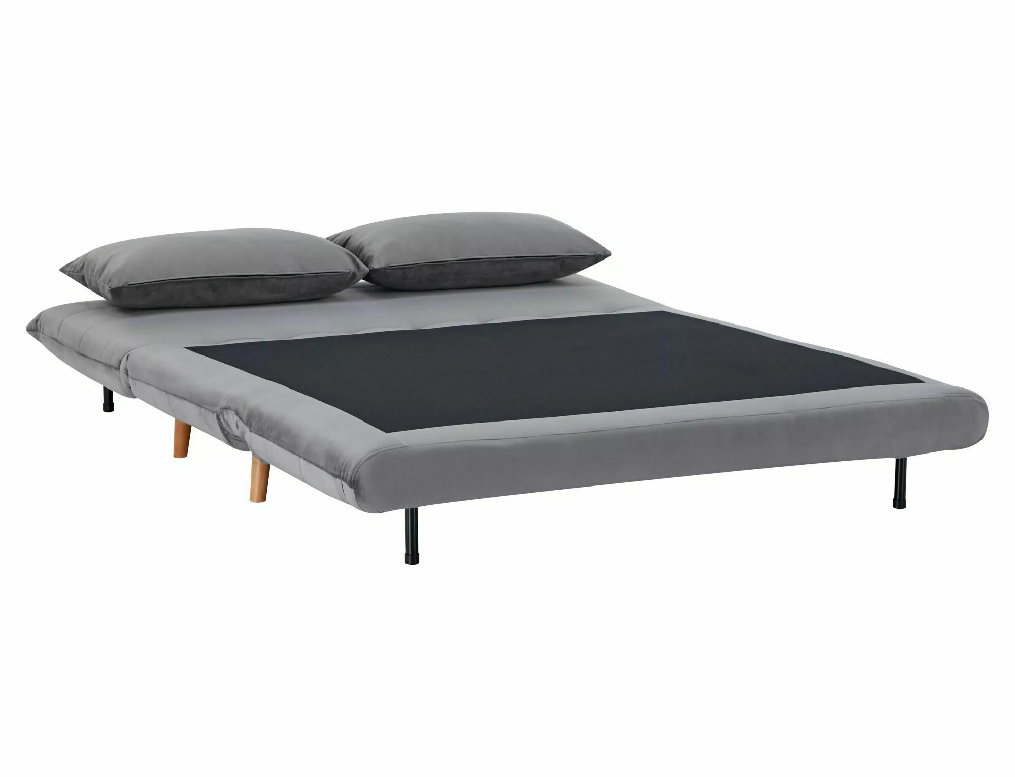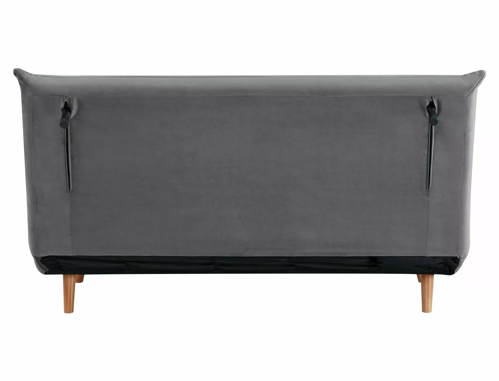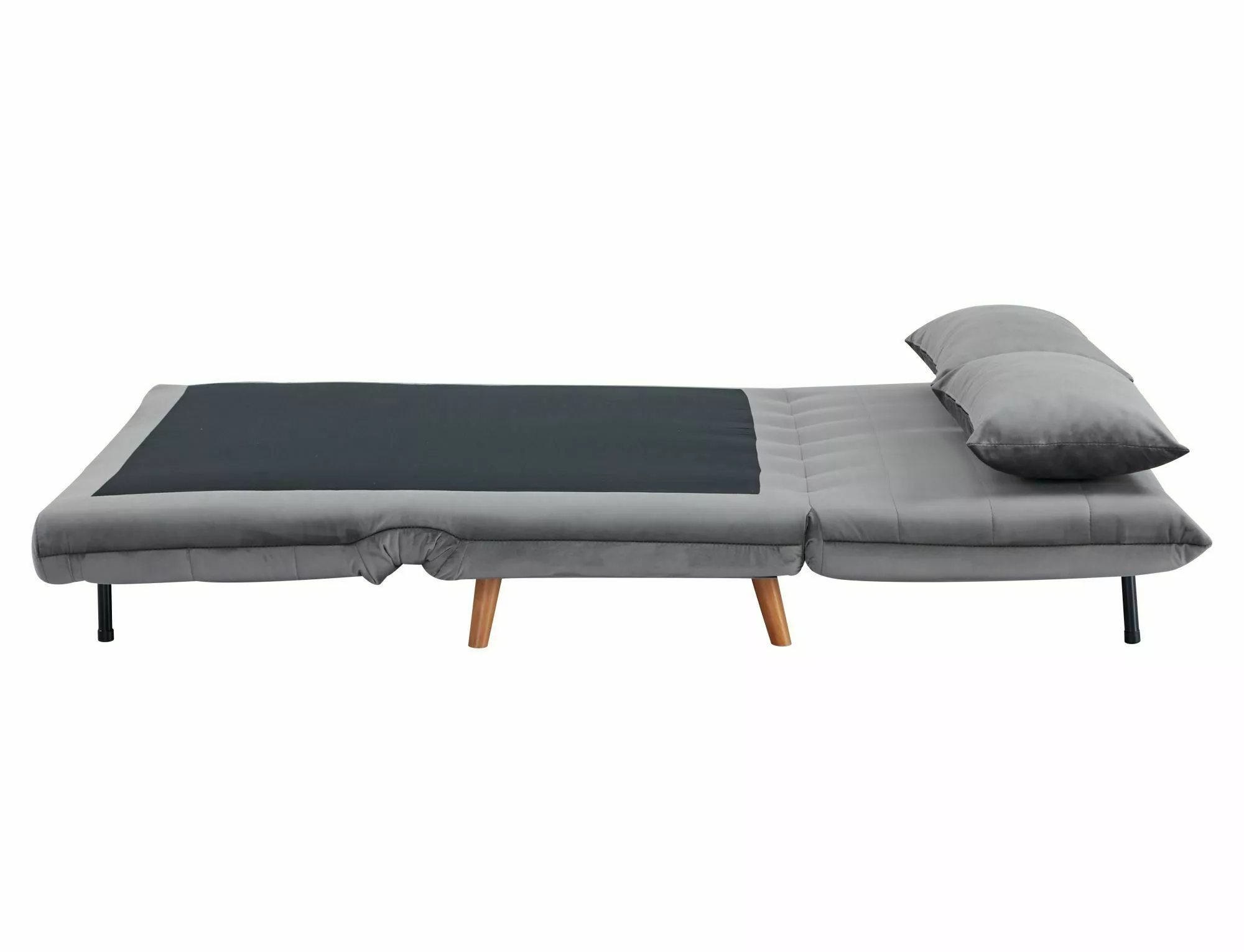 Sofa 2-osobowa z funkcją spania, tapicerka: tkanina aksamit, stelaż: drewno, kolor: szary / buk.