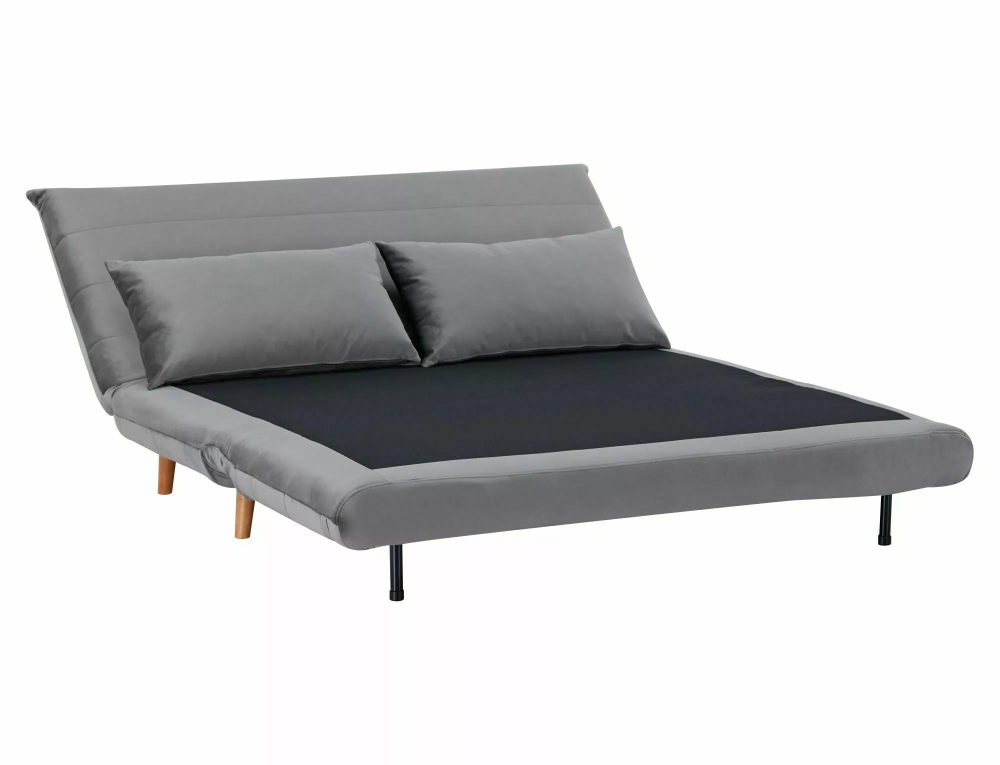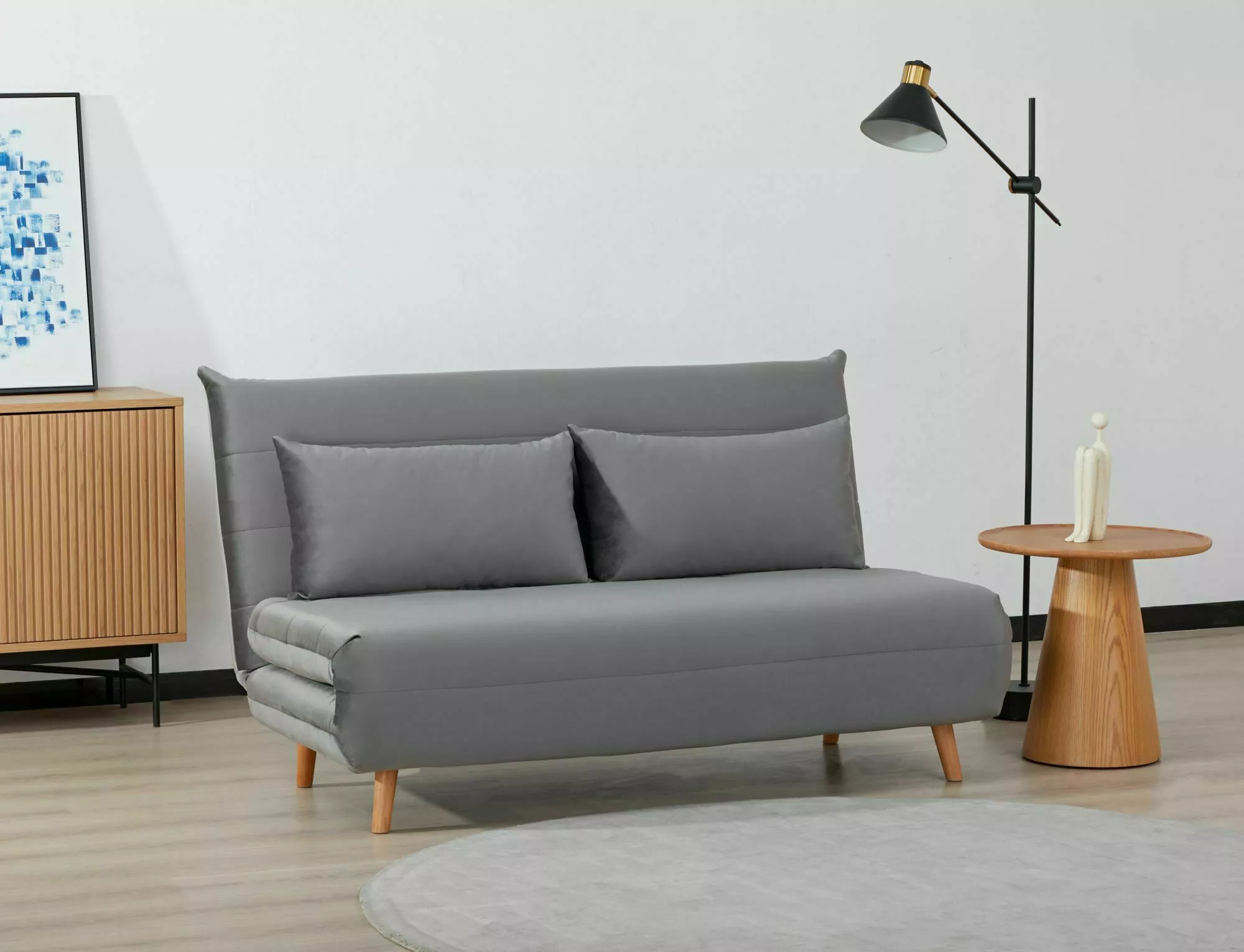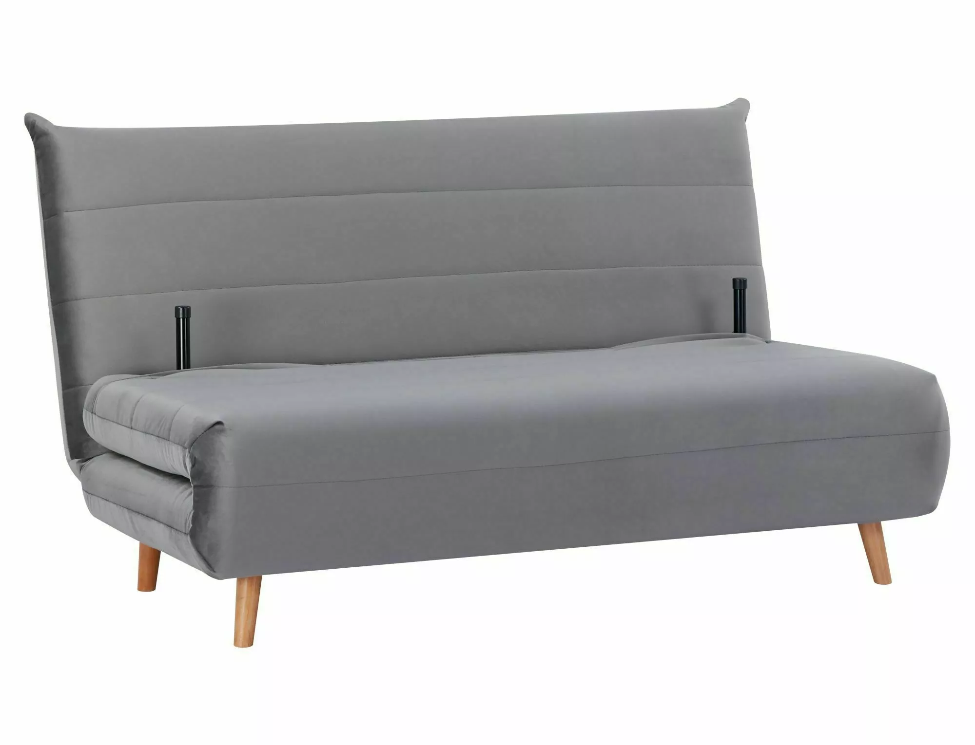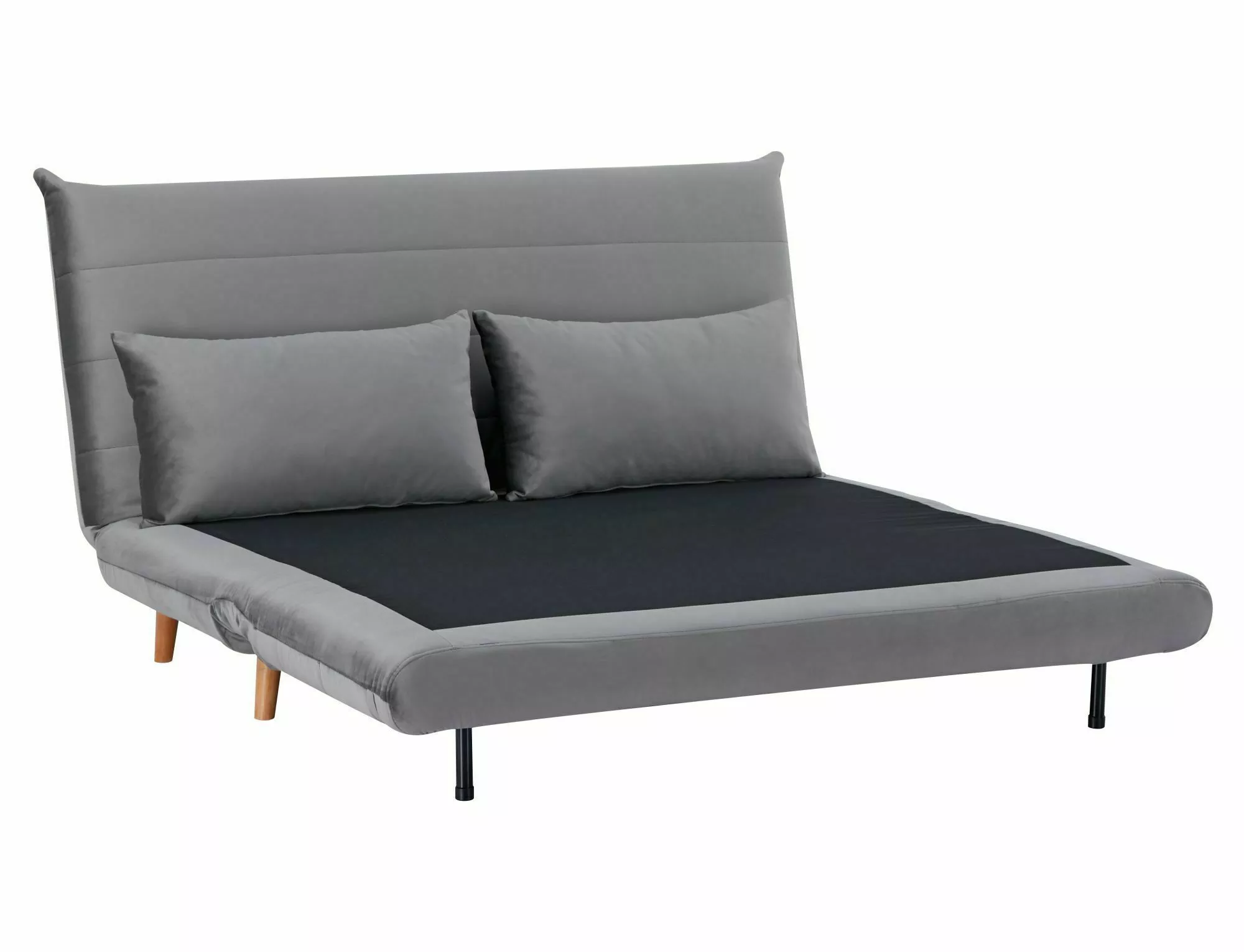 Sofa 2-osobowa z funkcją spania, tapicerka: tkanina aksamit, stelaż: drewno, kolor: szary / buk.