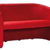 Sofa, materiał: ekoskóra, kolor: czerwony. Wymiary sofy: A – 76, B – 126, C – 41, D – 47, E – 60, F – 3 cm.