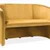 Sofa 2-osobowa, materiał: velvet, kolor: Bluvel 68 – curry. Wymiary sofy: A – 76, B – 126, C – 41, D – 47, E – 60, F – 3 cm.