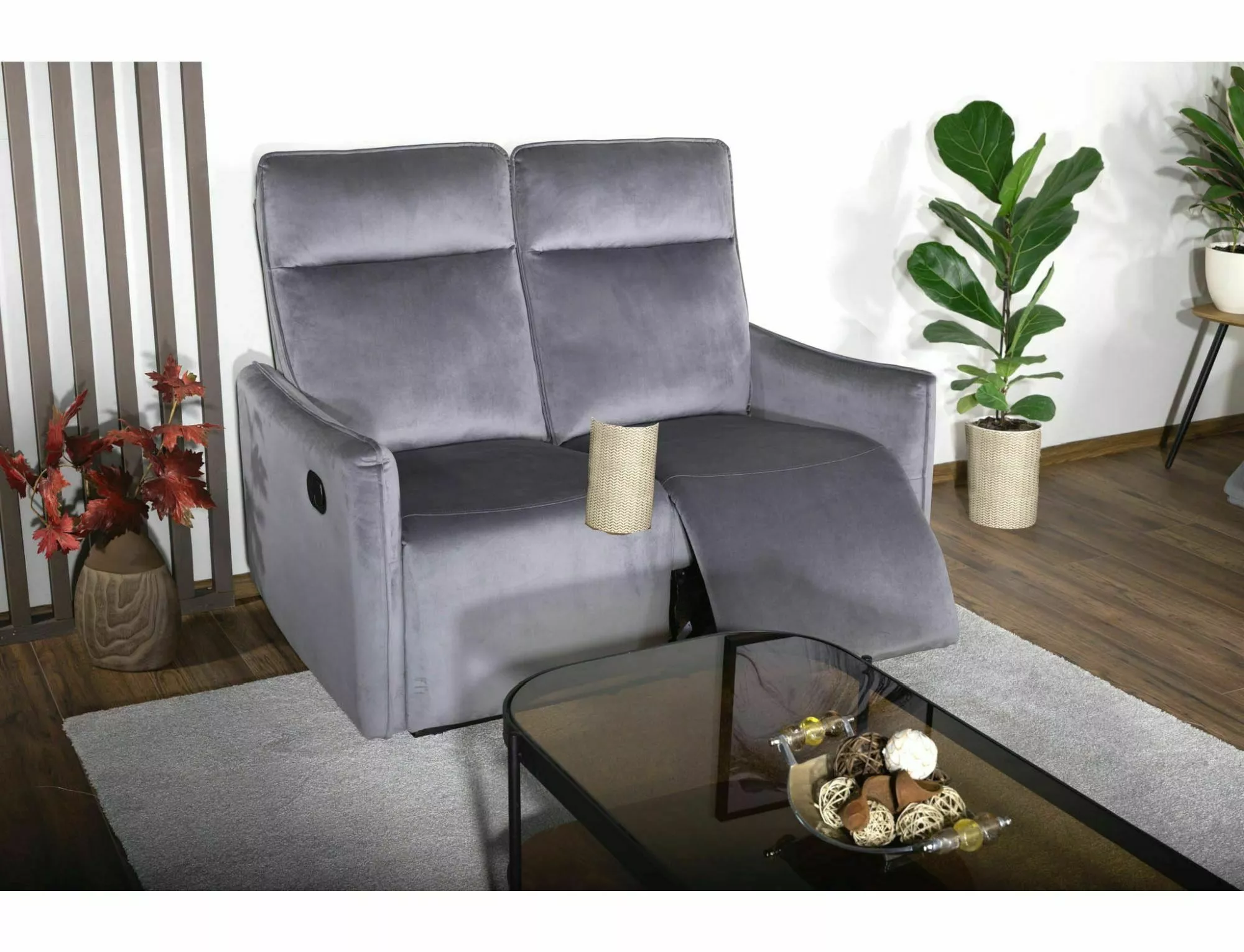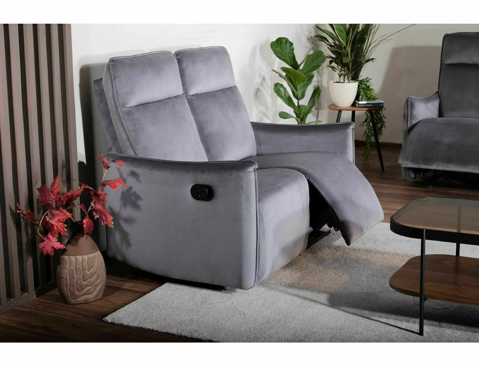 Sofa rozkładana, 2-osobowa, tkanina Bluvel, kolor: szary 14. Wymiary sofy: A – 102, B – 127, C – 48, D – 53, E – 86÷164, F – 5 cm.