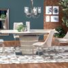 wymiary: 140÷180/80/76 cm, stół rozkładany, materiał: szkło / MDF lakierowany / stal nierdzewna, kolor: champagne mat