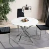 Stół, blat: szkło hartowane, efekt marmuru, stelaż: metal, kolor: biały / chrom.