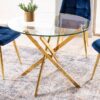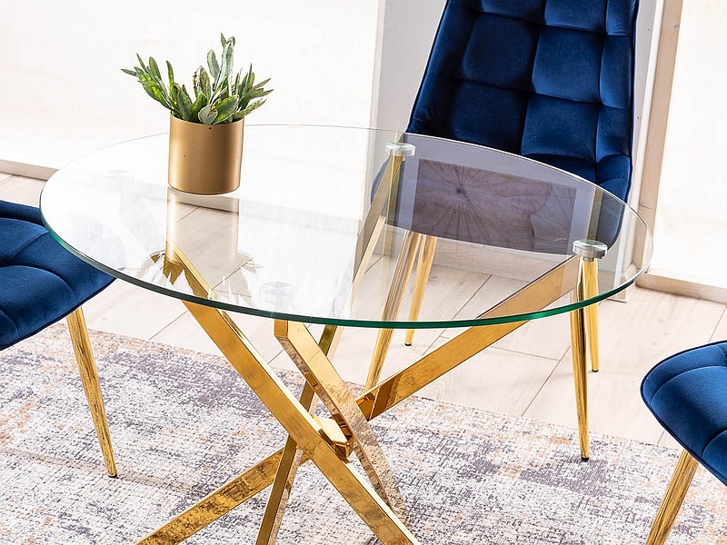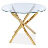 Stół, blat: szkło hartowane / stelaż: metal, kolor: złoty.