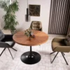 Stół, blat: MDF + okleina naturalna, stelaż: metal, kolor: orzech / czarny mat.