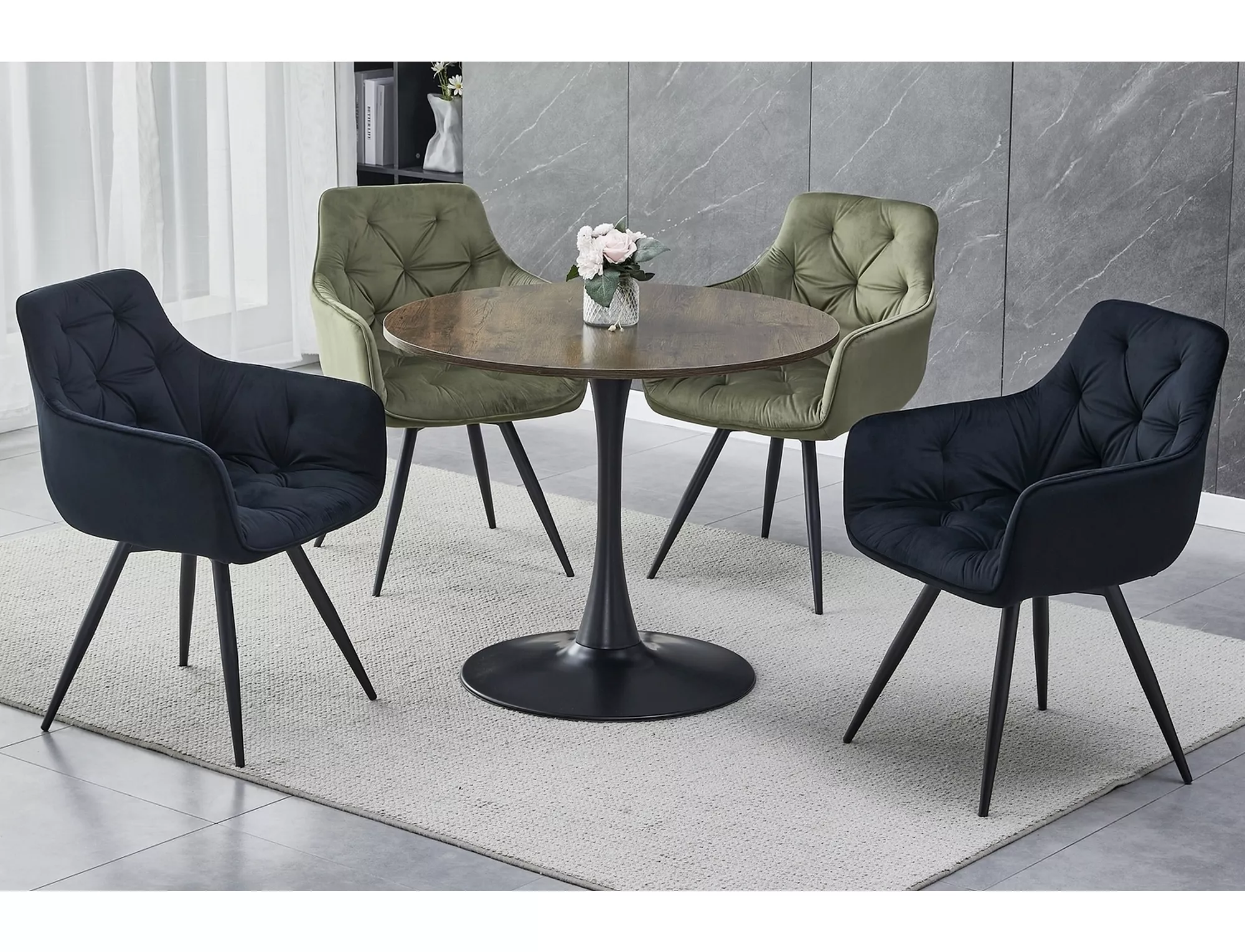 Stół, blat: MDF+melamina, stelaż: metal, kolor: orzech / czarny mat.
