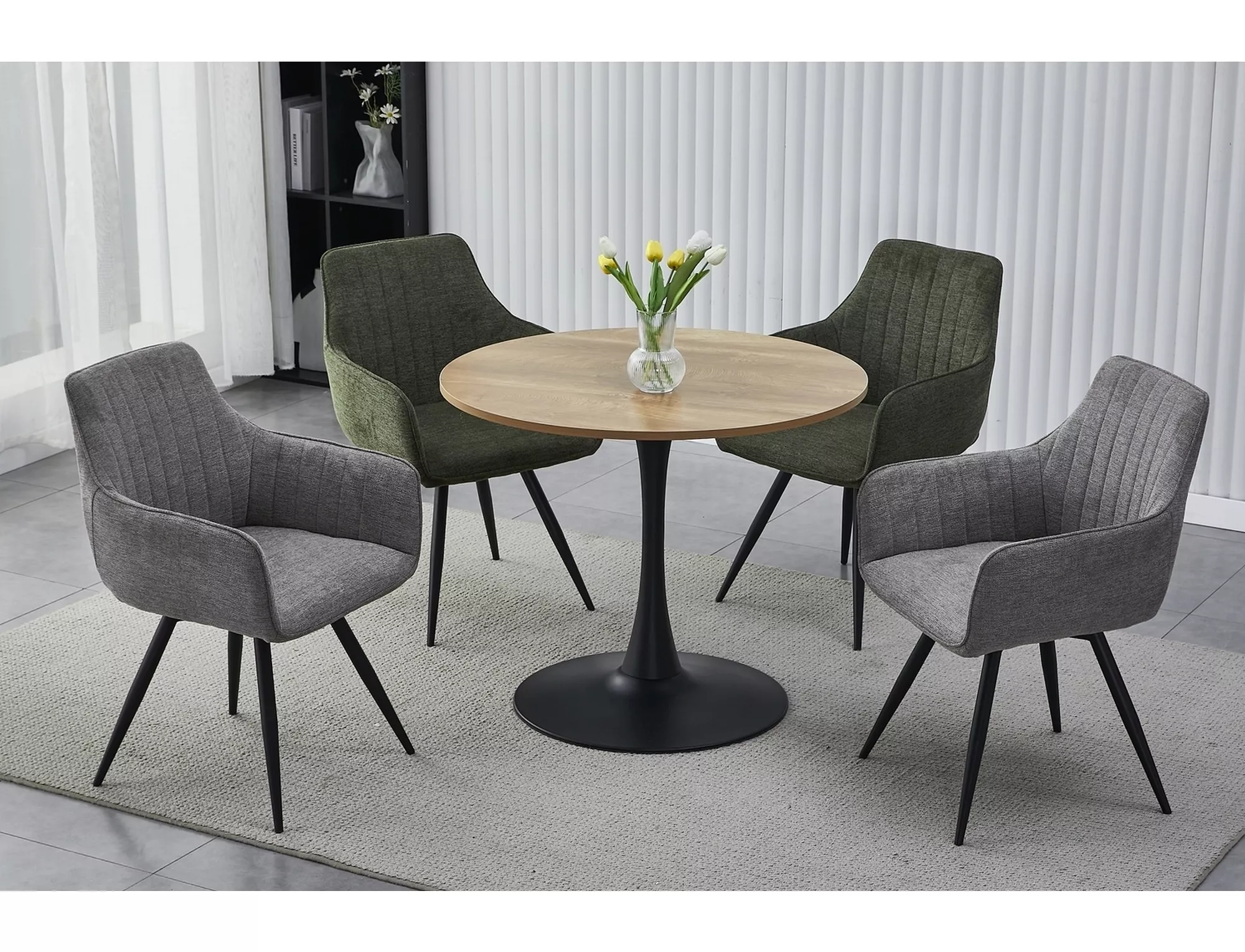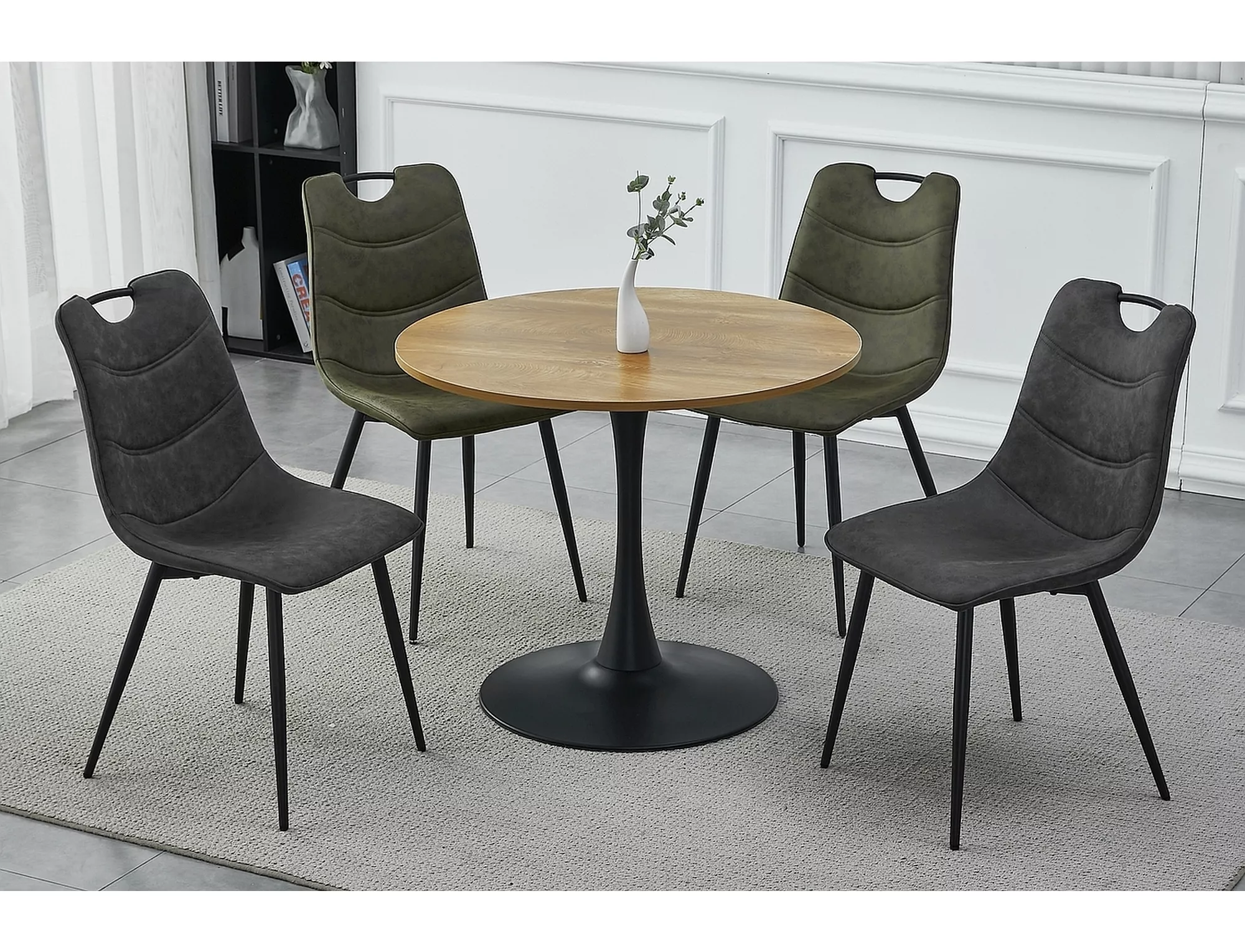 Stół, blat: MDF+melamina, stelaż: metal, kolor: dąb / czarny mat.