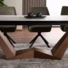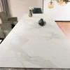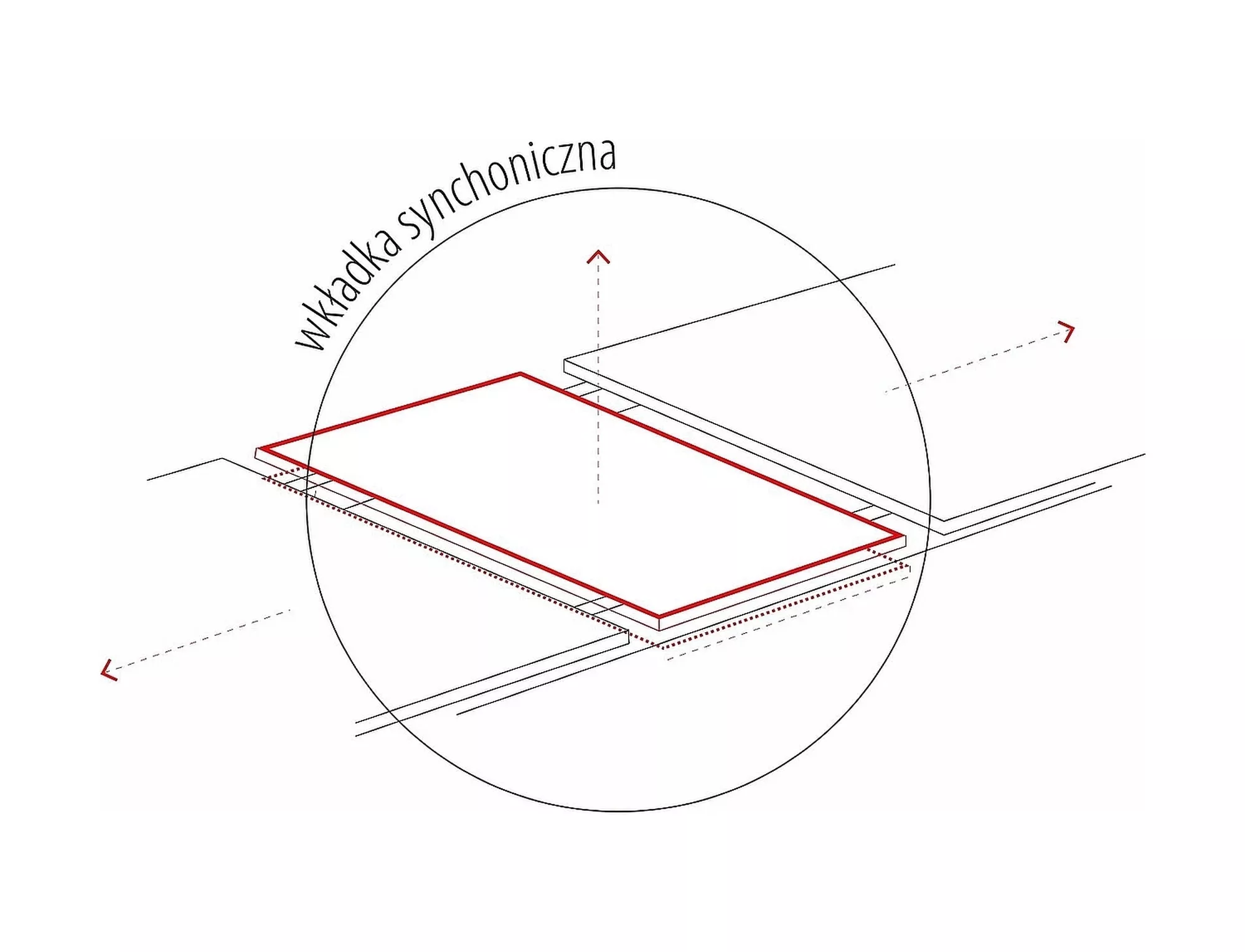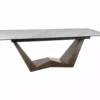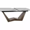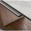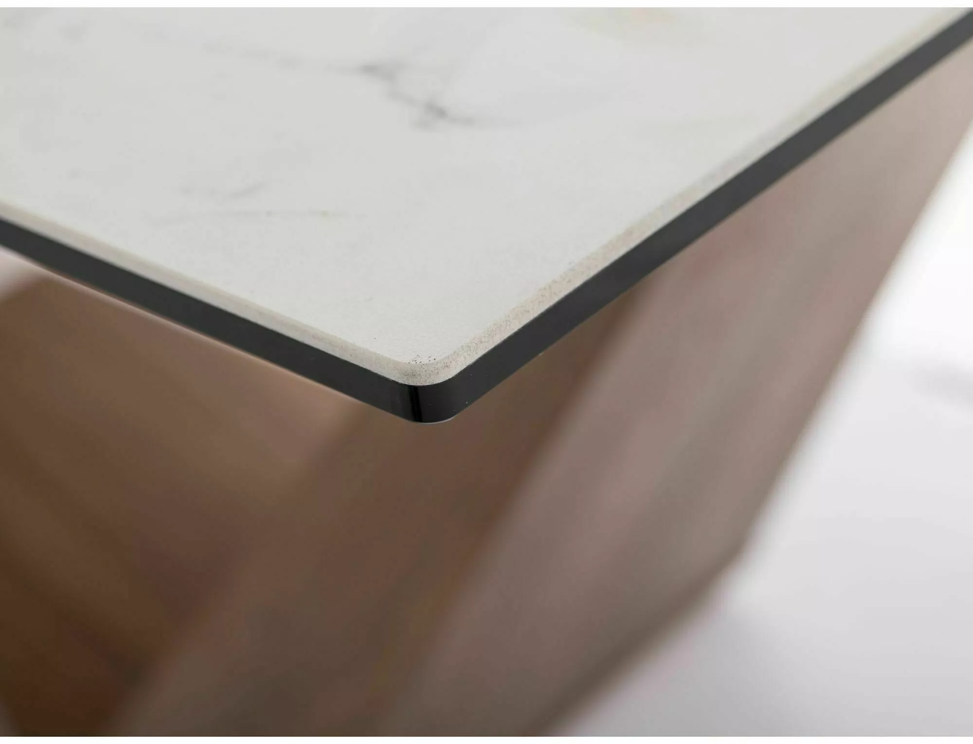 Stół rozkładany, blat: szkło hartowane + ceramika STATUARIO VENATO, stelaż: metal, kolor: biały mat / orzech.