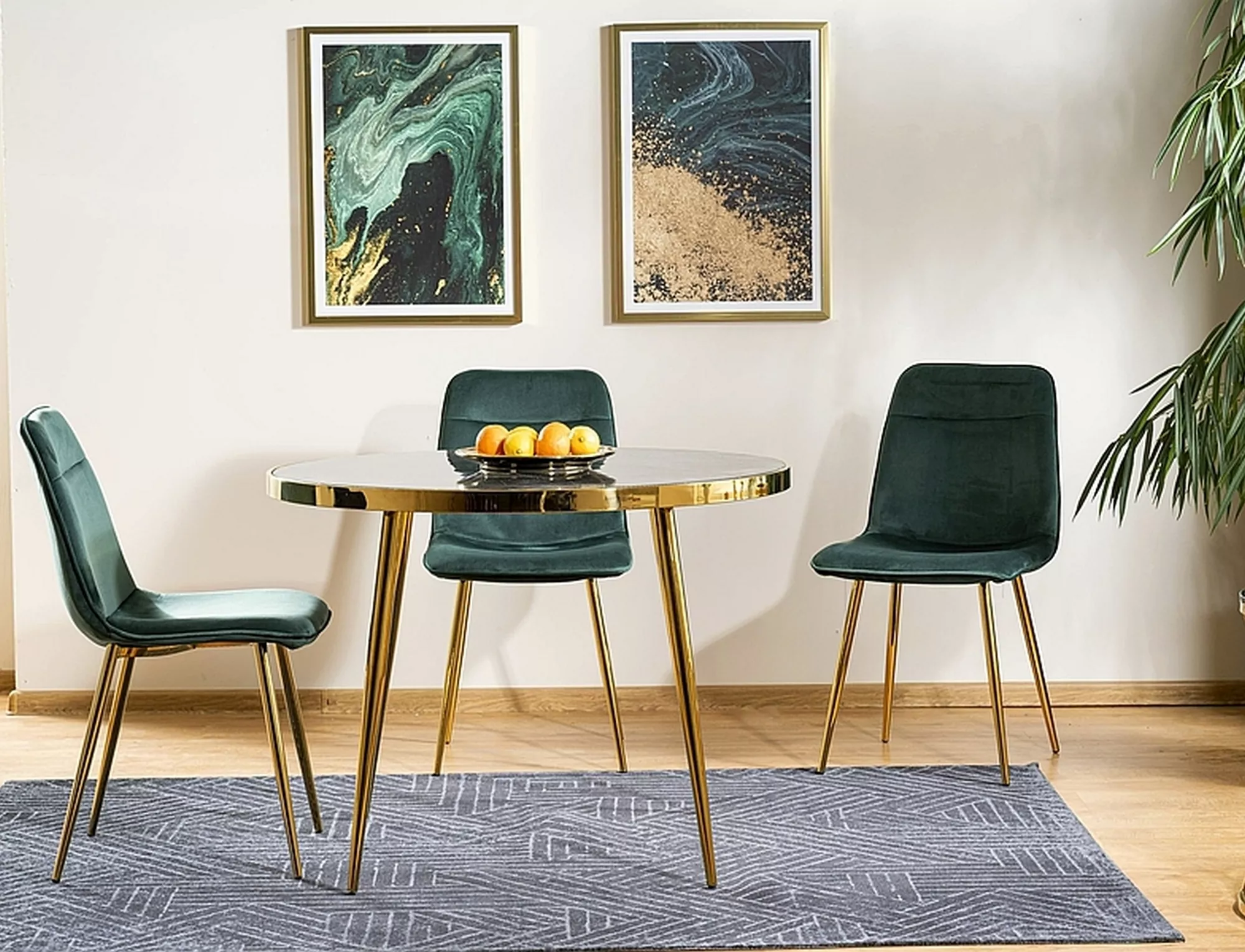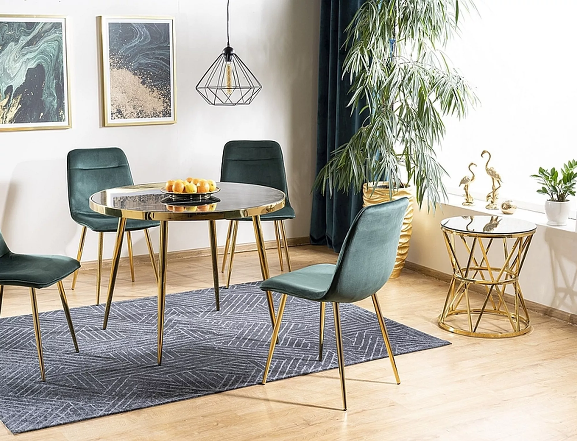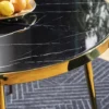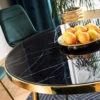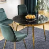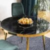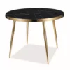 Stół, blat: szkło hartowane z efektem marmuru, stelaż: metal, kolor: czarny / złot.