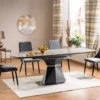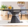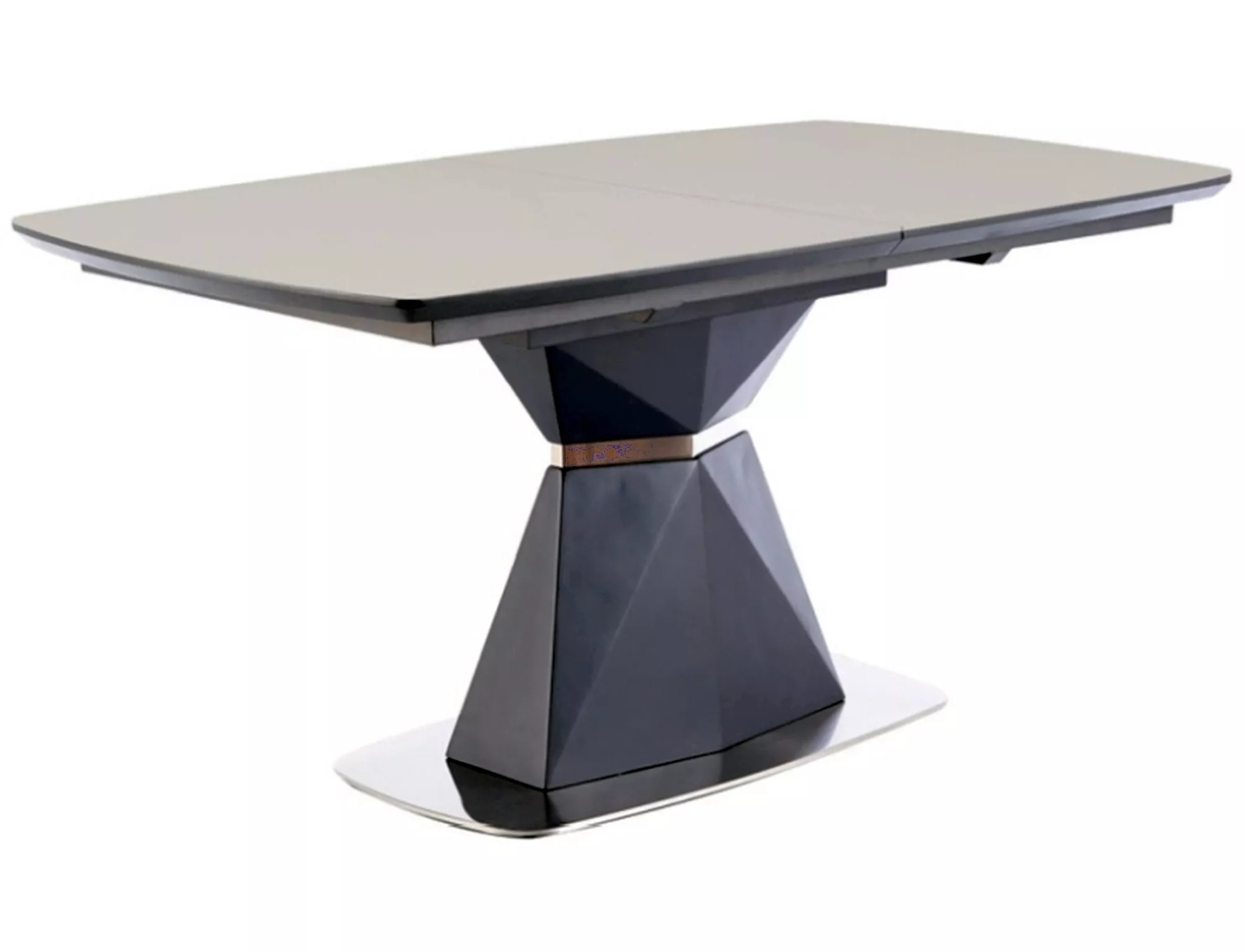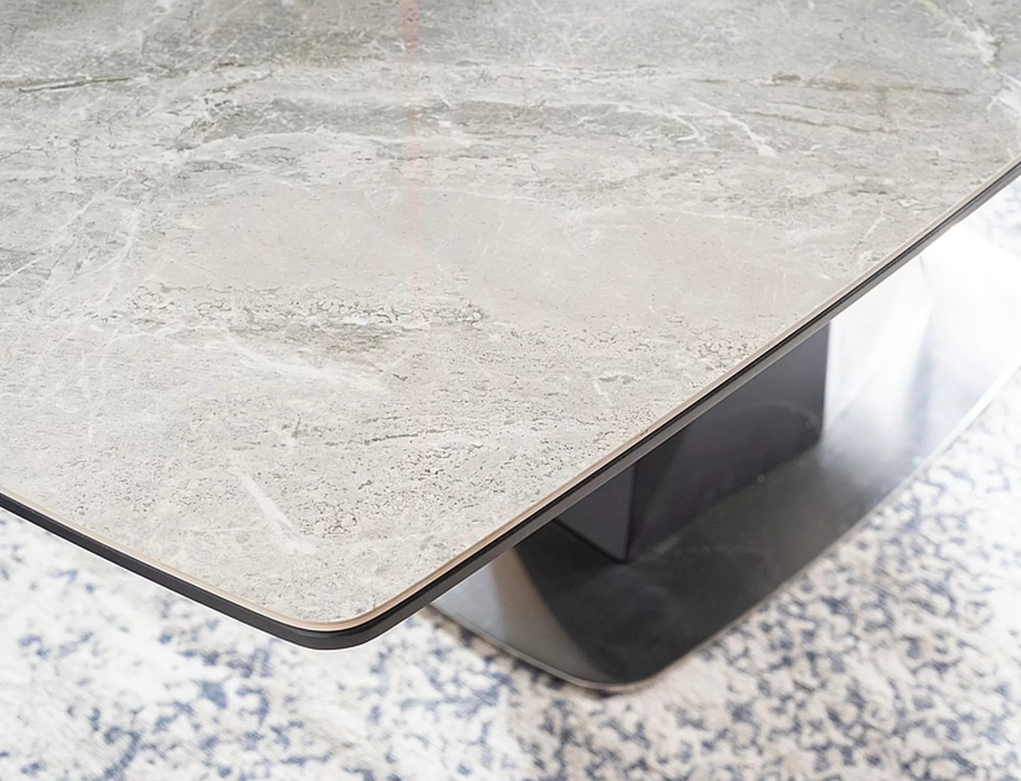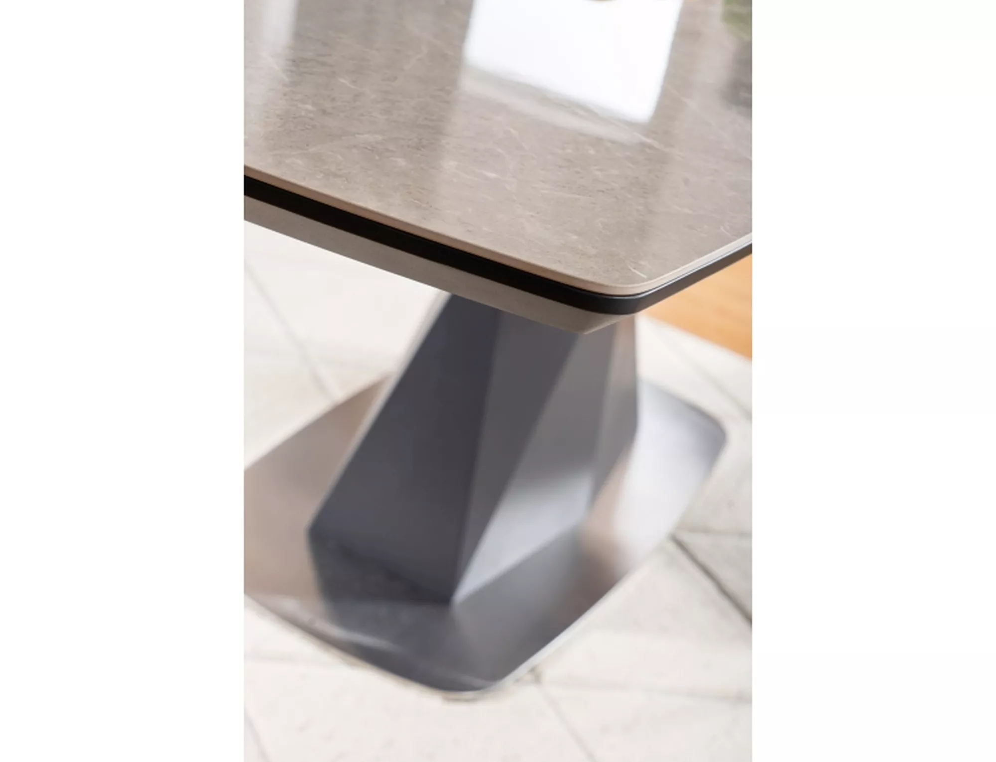 Stół rozkładany, blat: MDF+ceramika, efekt marmuru, stelaż: MDF+stal szczotkowana, kolor: szary marmur / antracyt mat.