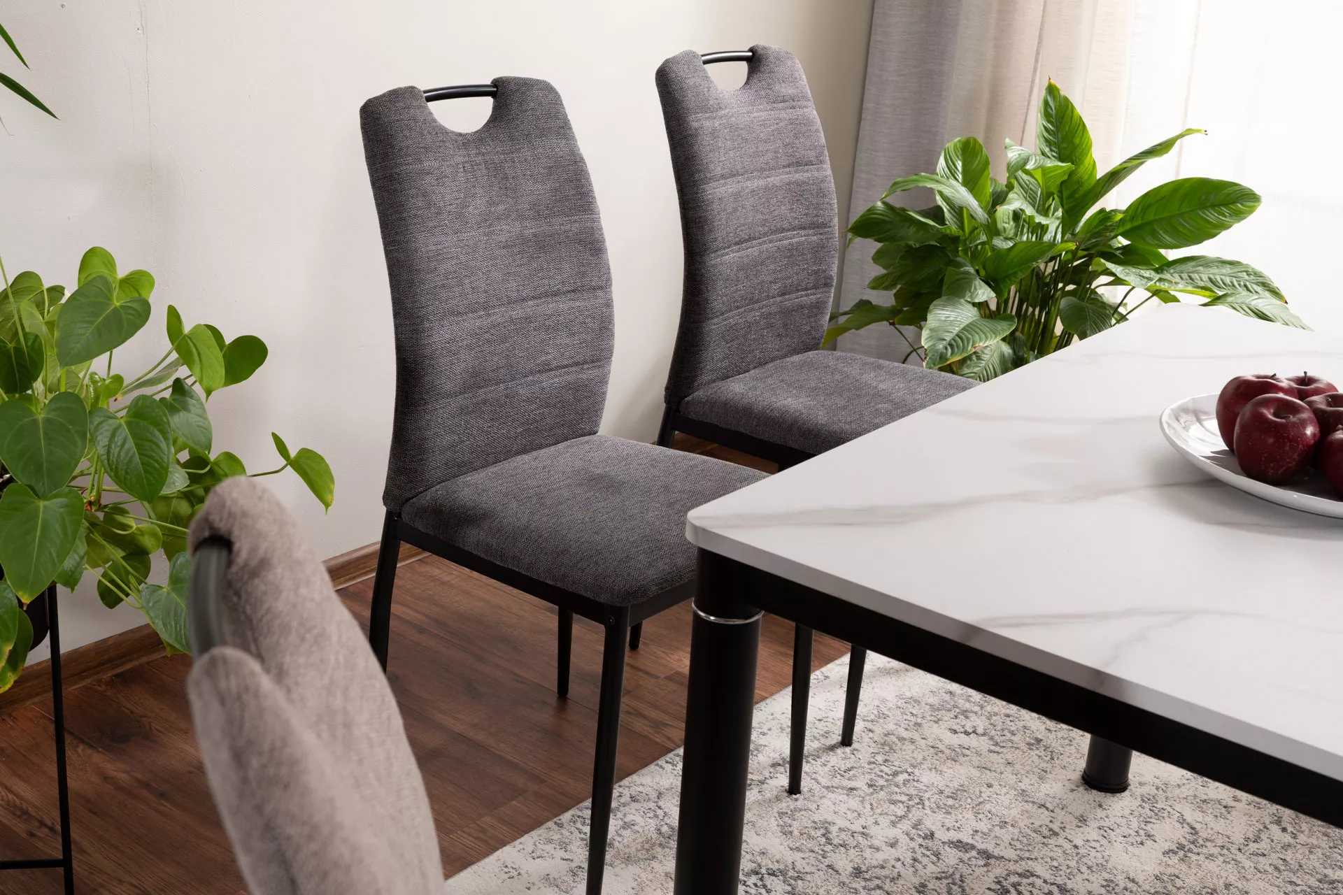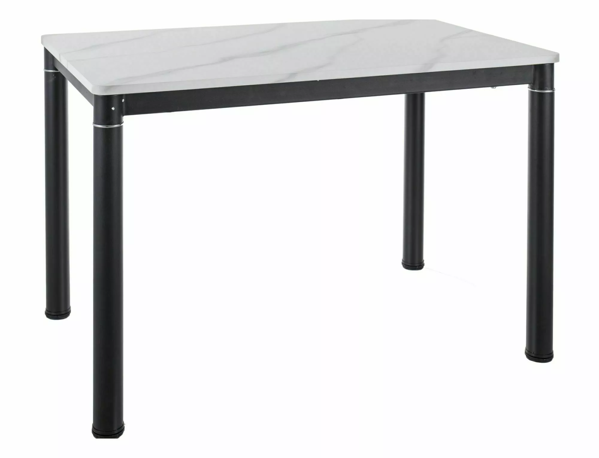Stół, blat: MDF + okleina, stelaż: metal, kolor: biały efekt marmuru / czarny mat.