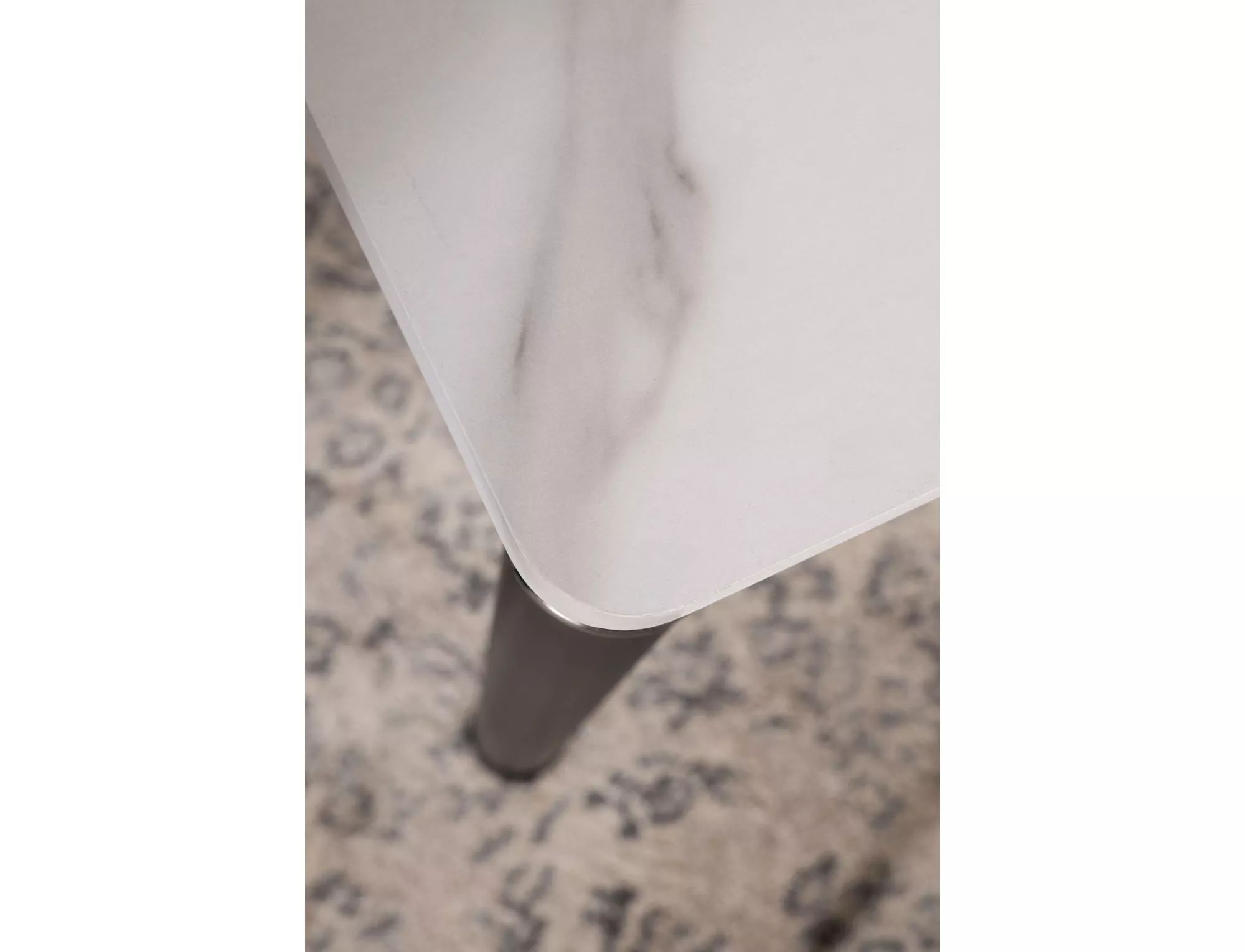 Stół, blat: MDF + okleina, stelaż: metal, kolor: biały efekt marmuru / czarny mat.