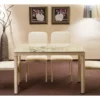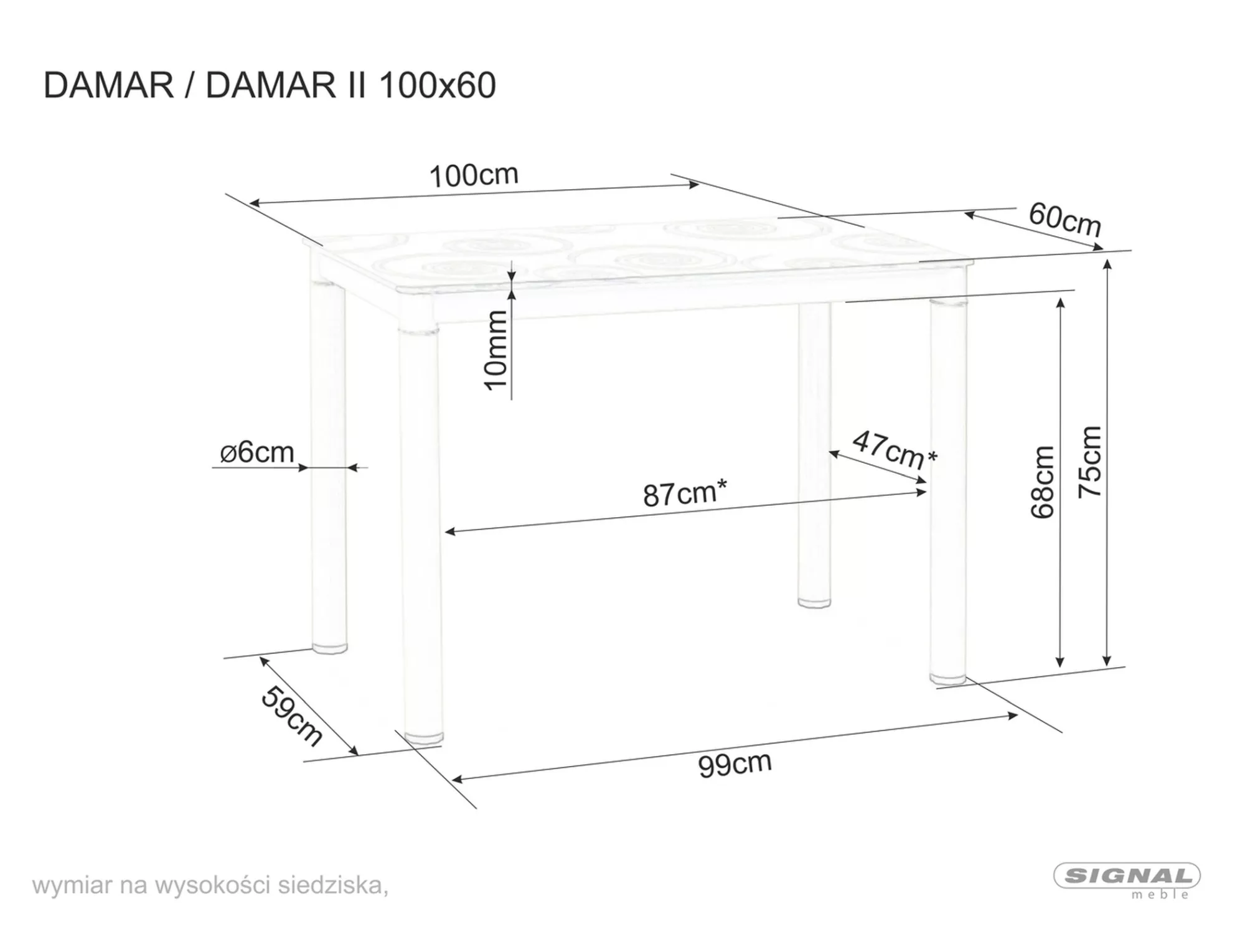 Stół, blat: szkło hartowane, kolor: krem / stelaż: metal malowany.