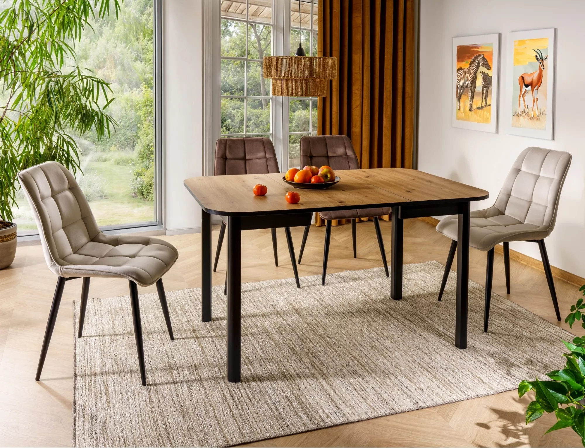 Stół rozkładany, blat: płyta laminowana, stelaż: płyta laminowana, kolor: dąb artisan / czarny mat.