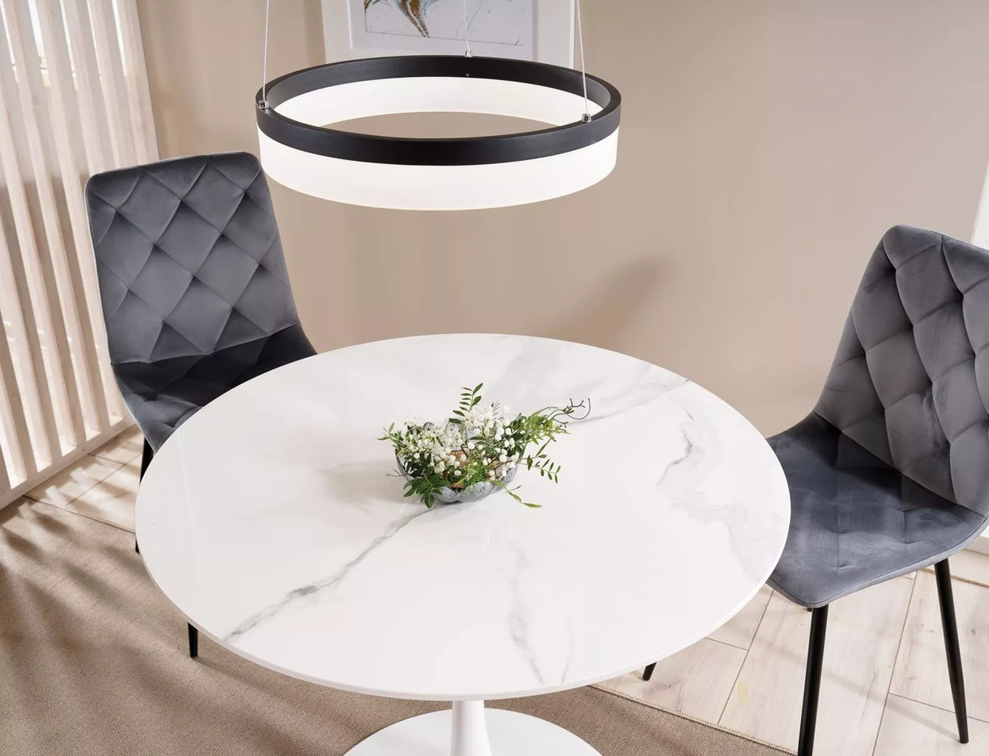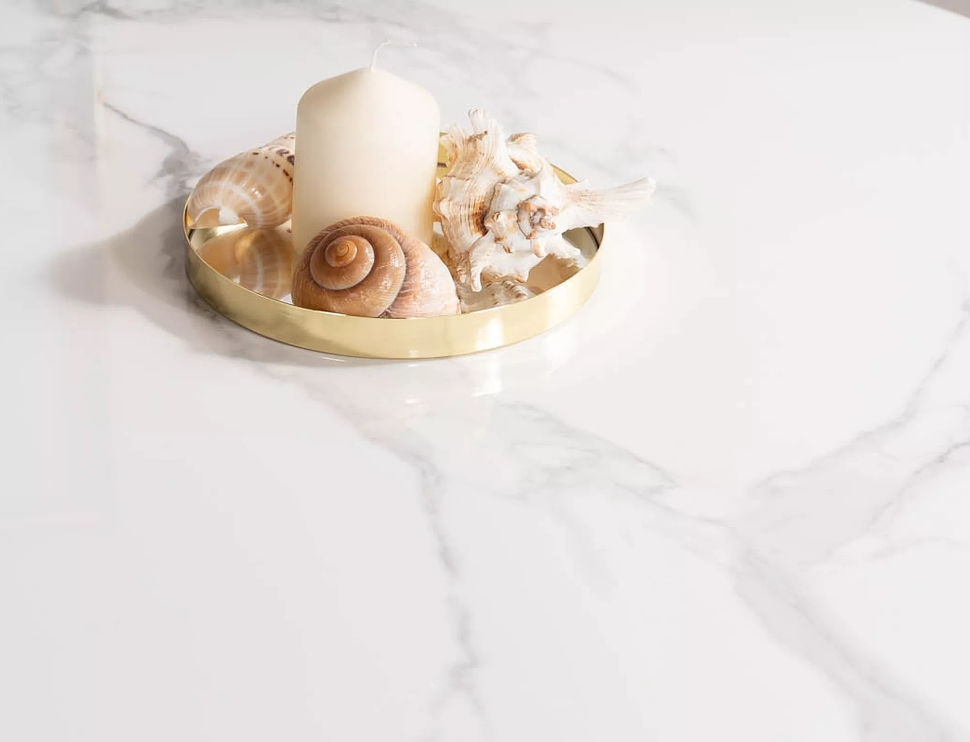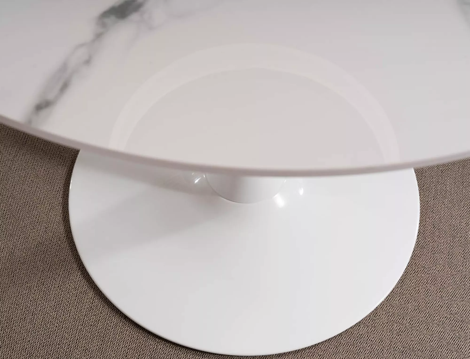 Stół, blat: ceramika, CALACATTA, stelaż: metal, kolor: biały / biały.