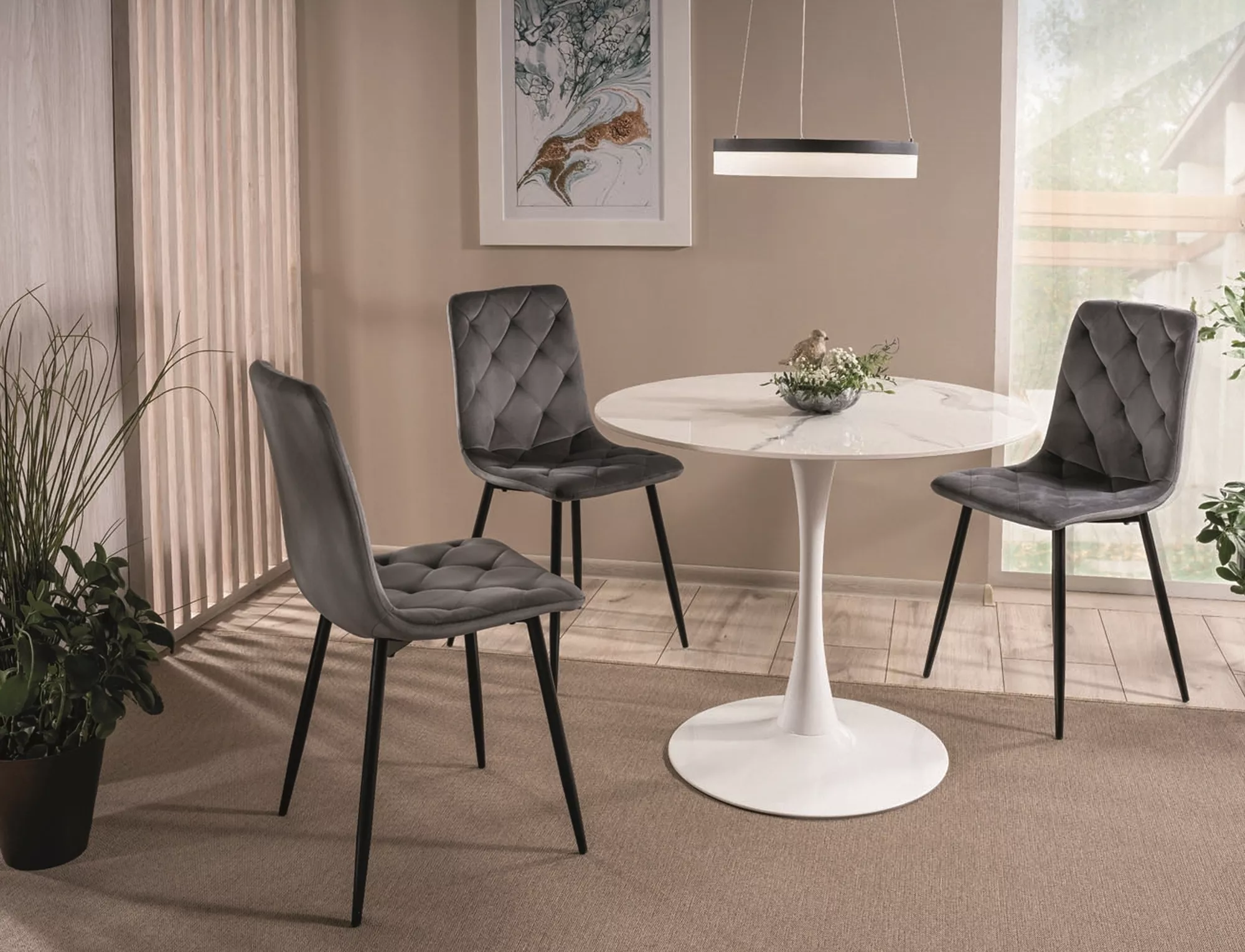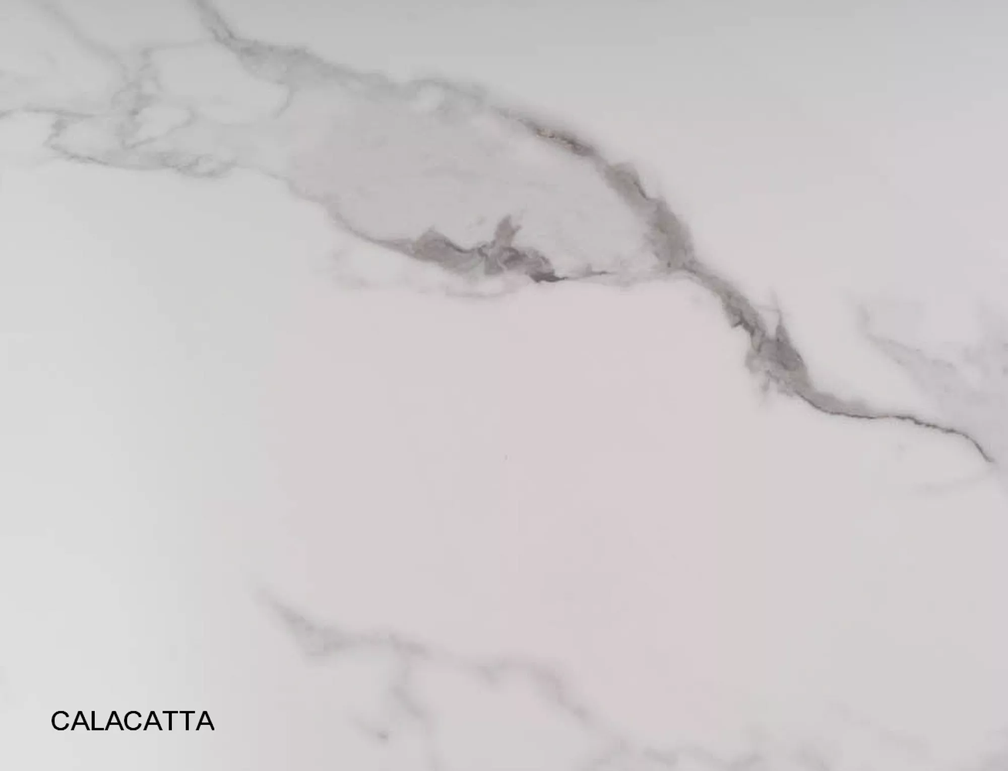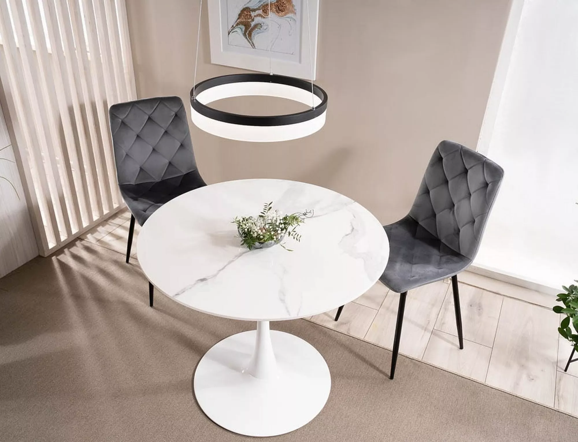 Stół, blat: ceramika, CALACATTA, stelaż: metal, kolor: biały / biały.