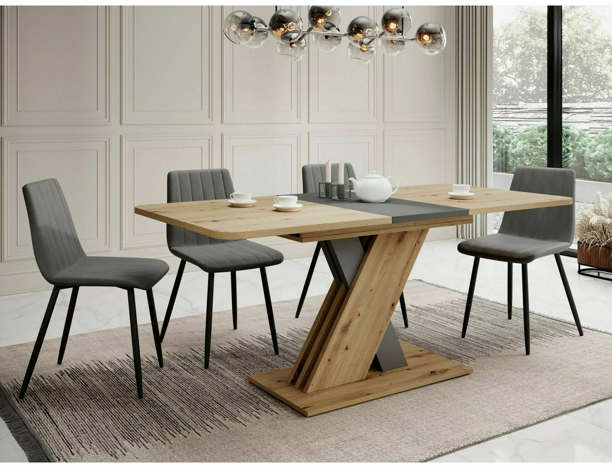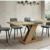 Stół rozkładany, blat: płyta laminowana, stelaż: płyta laminowana, kolor: dąb artisan / antracyt.