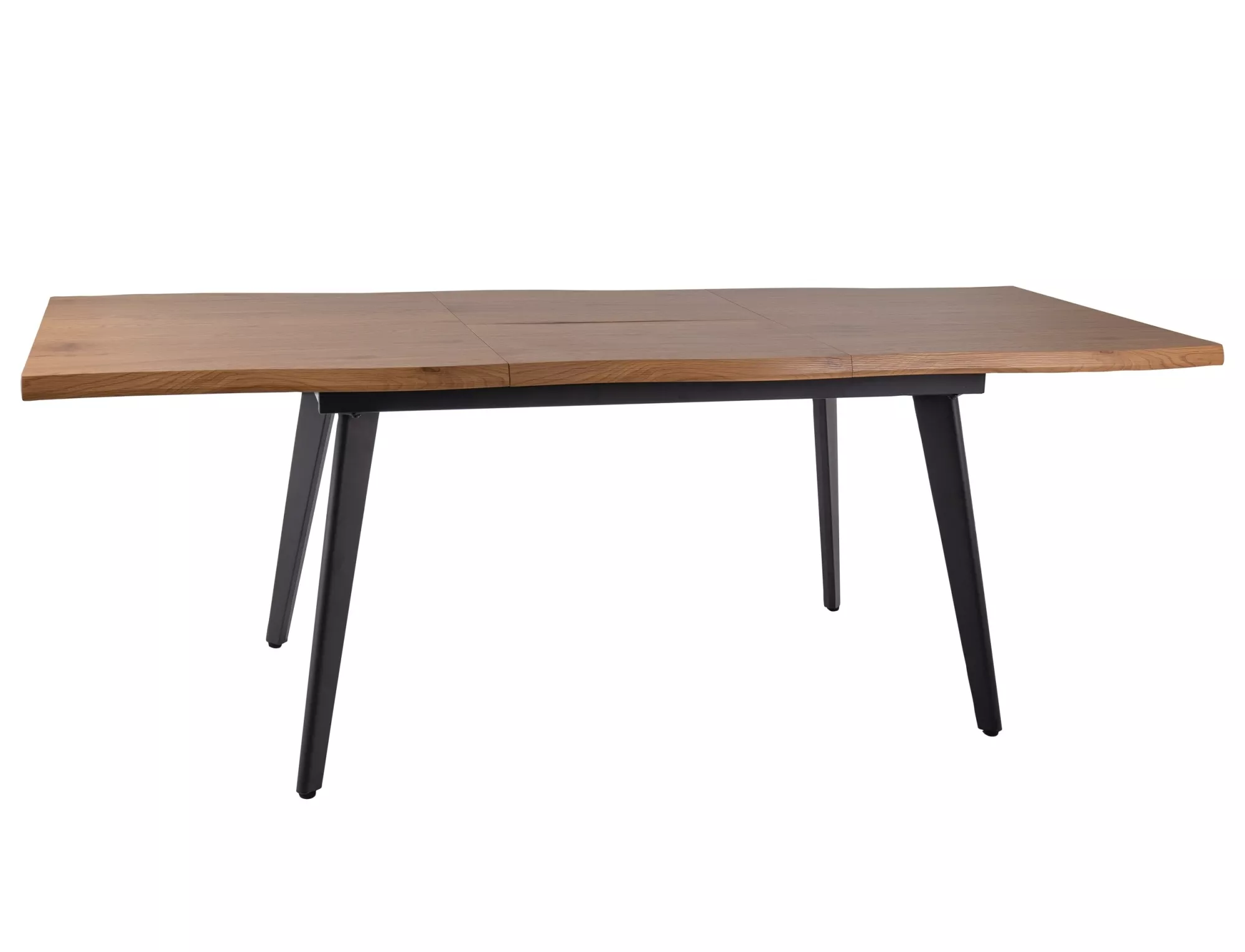 Stół rozkładany, blat: MDF + okleina, stelaż: metal, kolor: dąb / czarny mat. Uwaga zmiana: Wkładka typu motylek.
