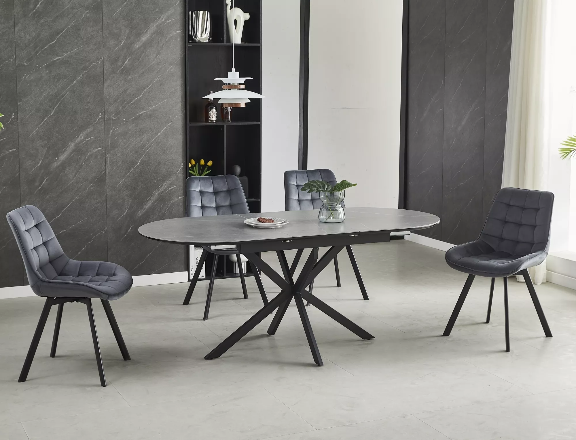 Stół rozkładany, blat: ceramika, stelaż: metal, kolor: szary mat / czarny mat.