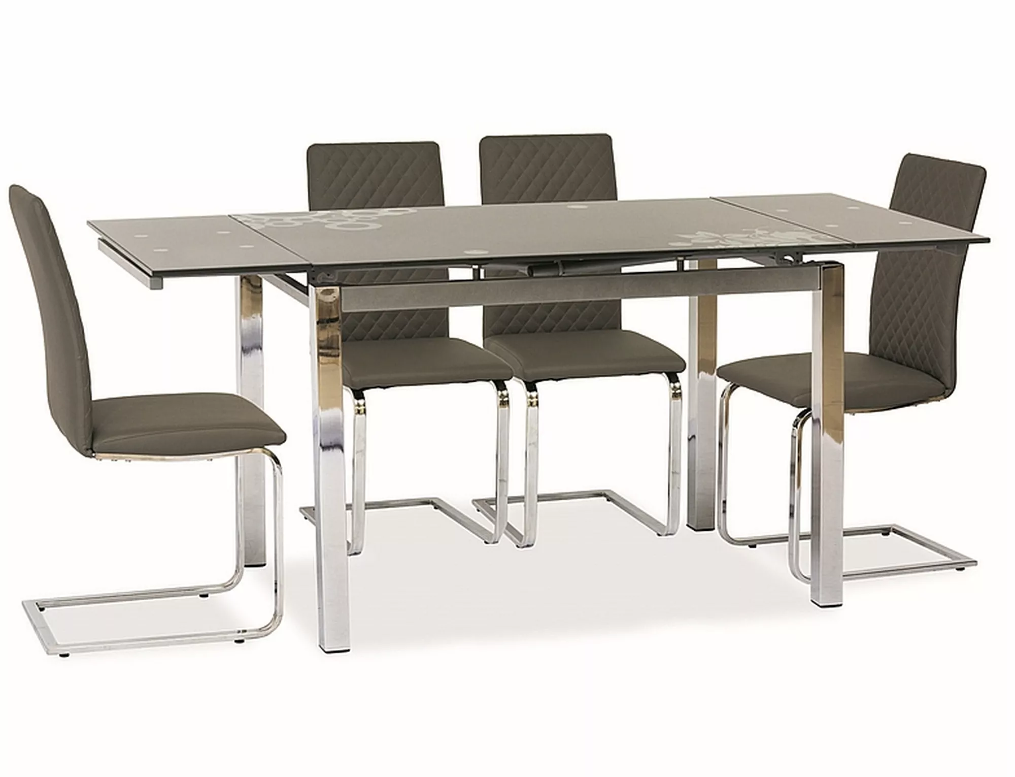 Stół, blat: szkło hartowane, kolor: szary / stelaż: metal chromowany