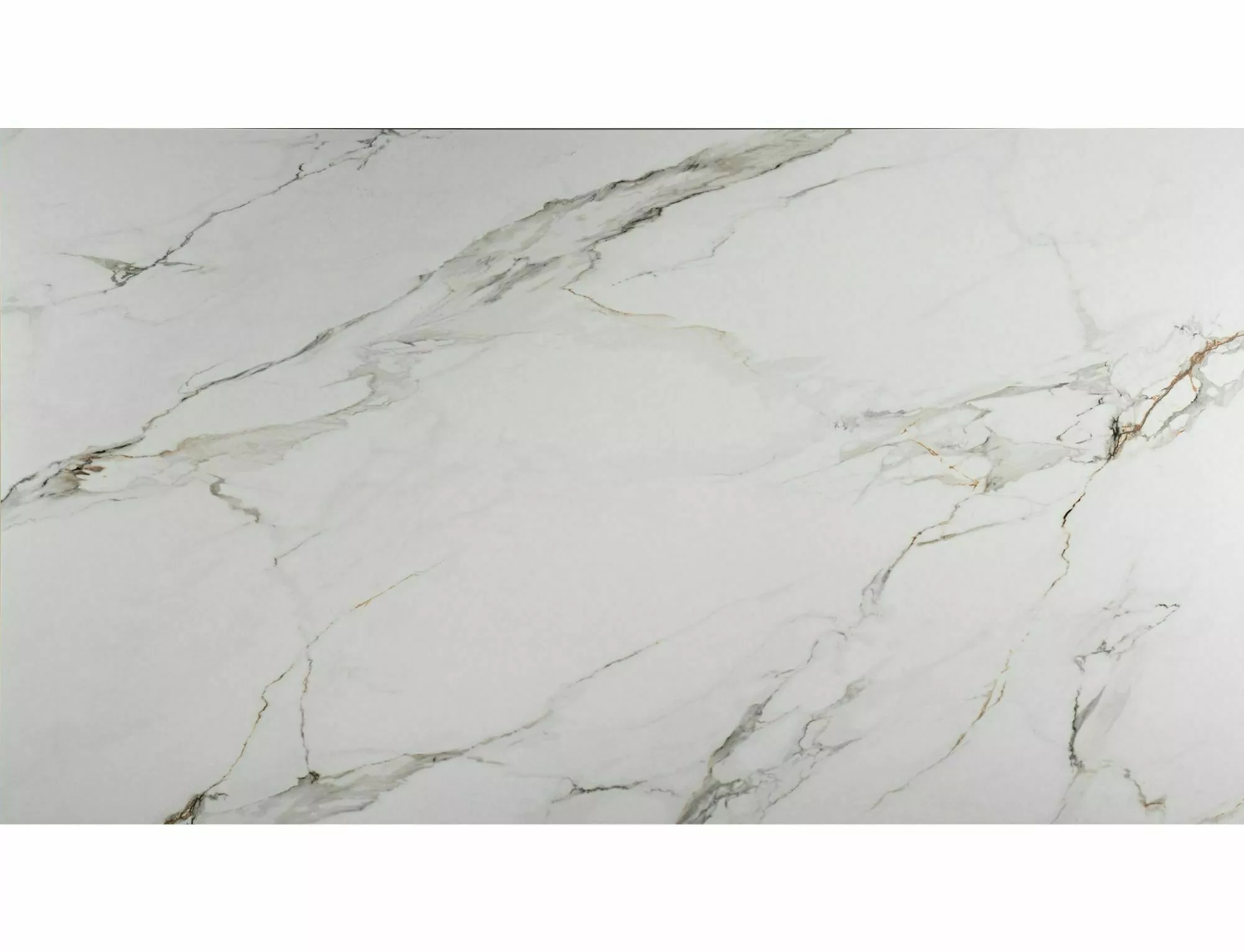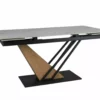 Stół rozkładany, blat: ceramika, stelaż: metal + MDF + okleina, kolor: biały mat / dąb.