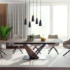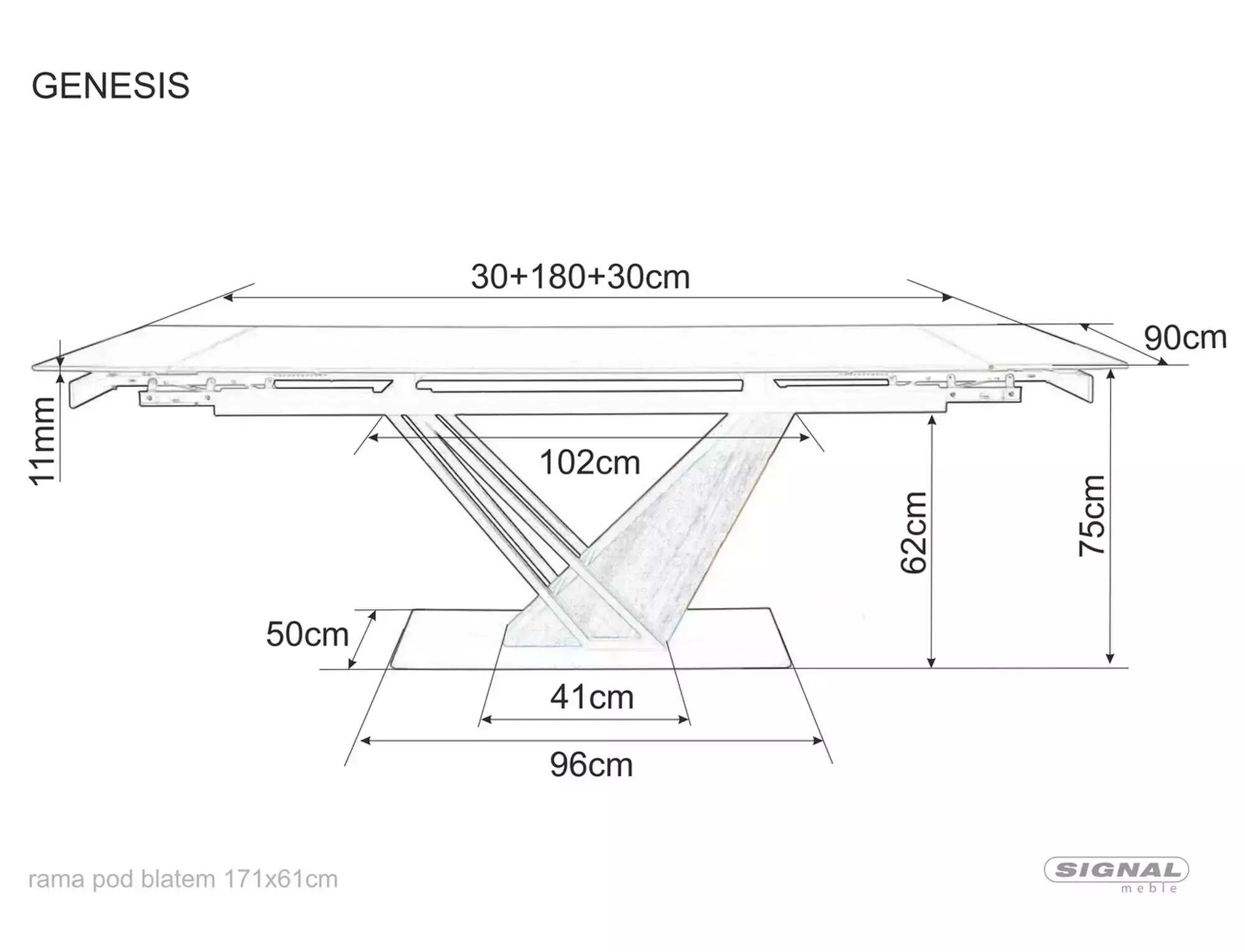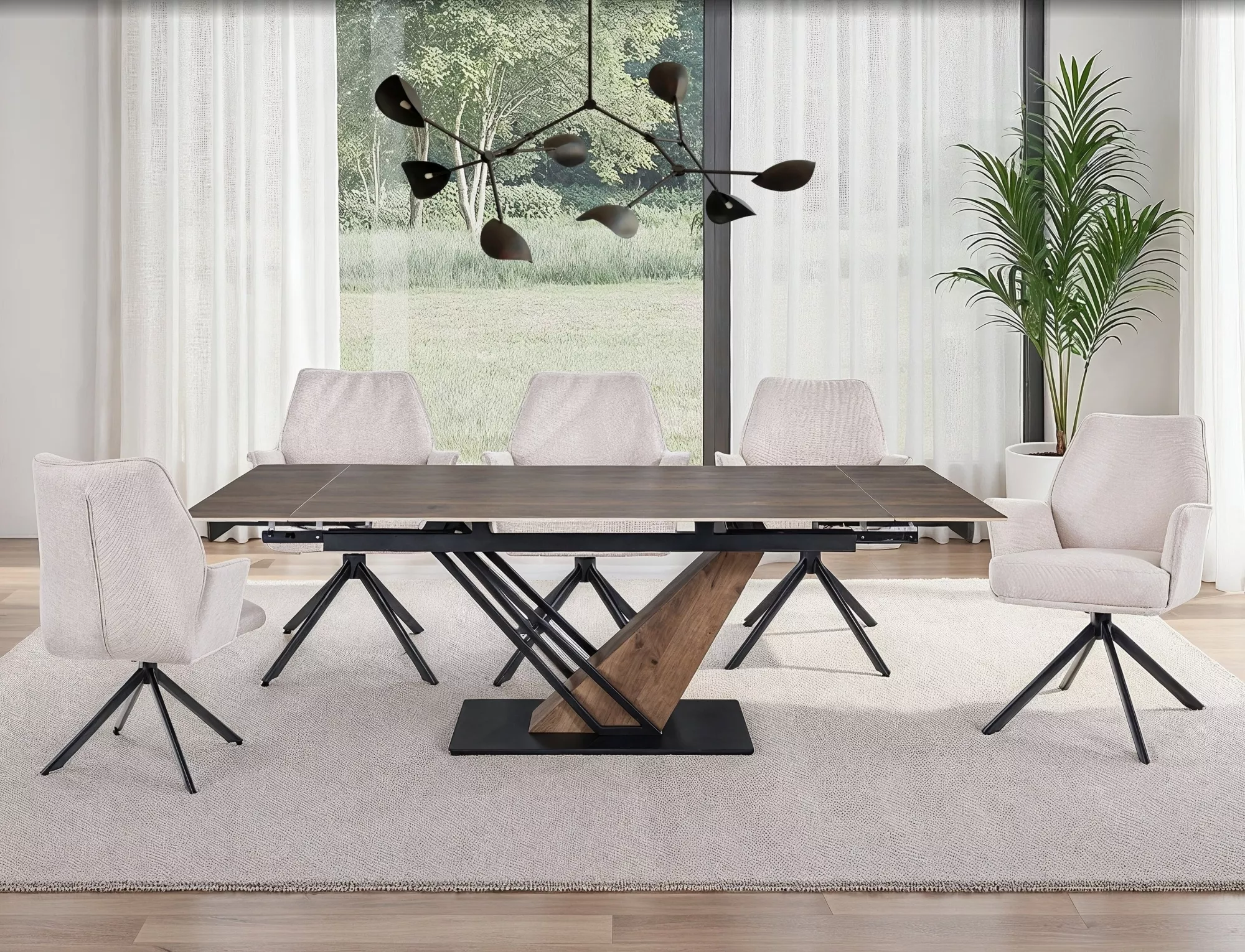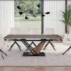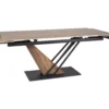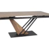 Stół rozkładany, blat: ceramika, stelaż: metal + MDF + okleina, kolor: dąb, efekt drewna / czarny mat + dąb.