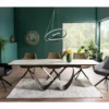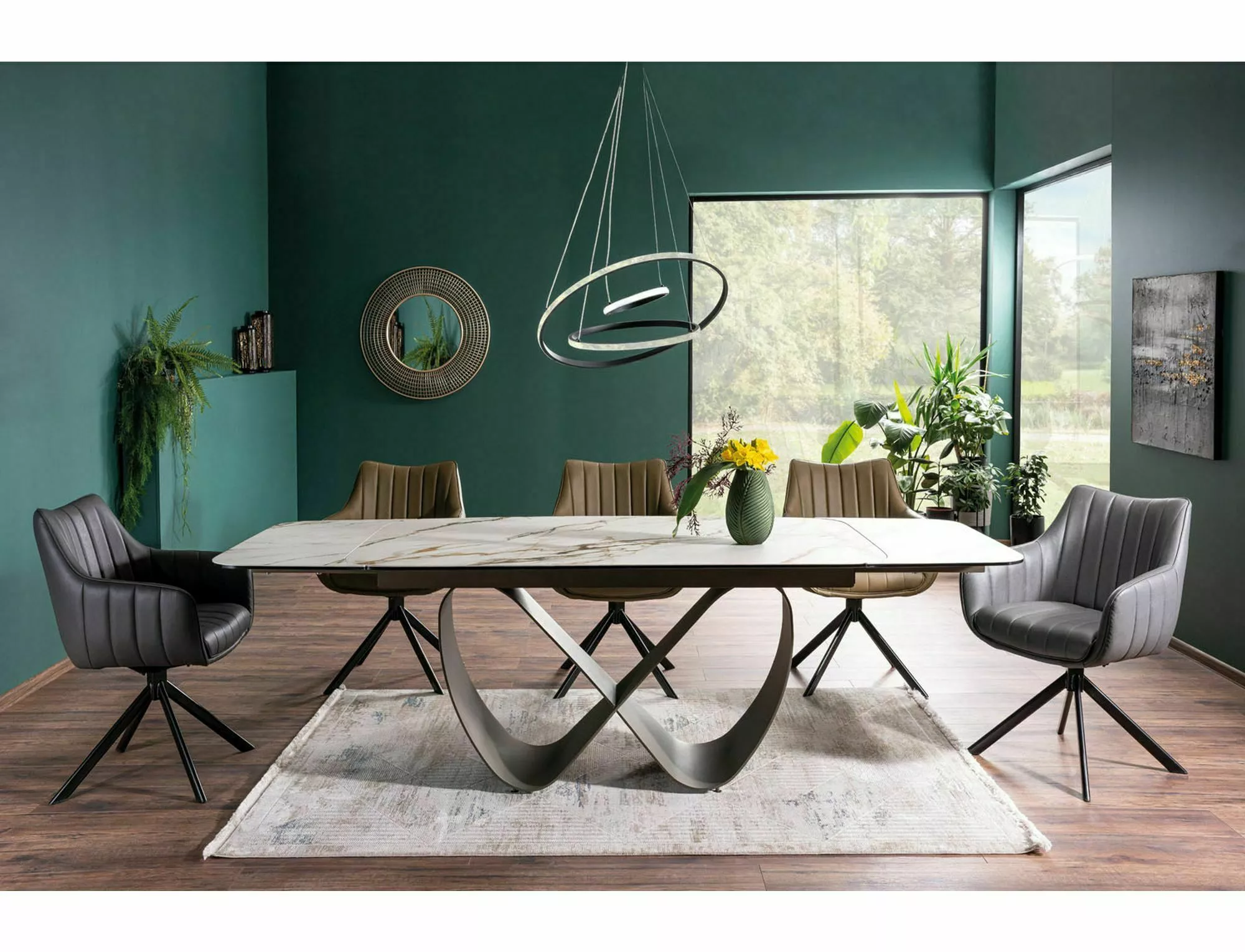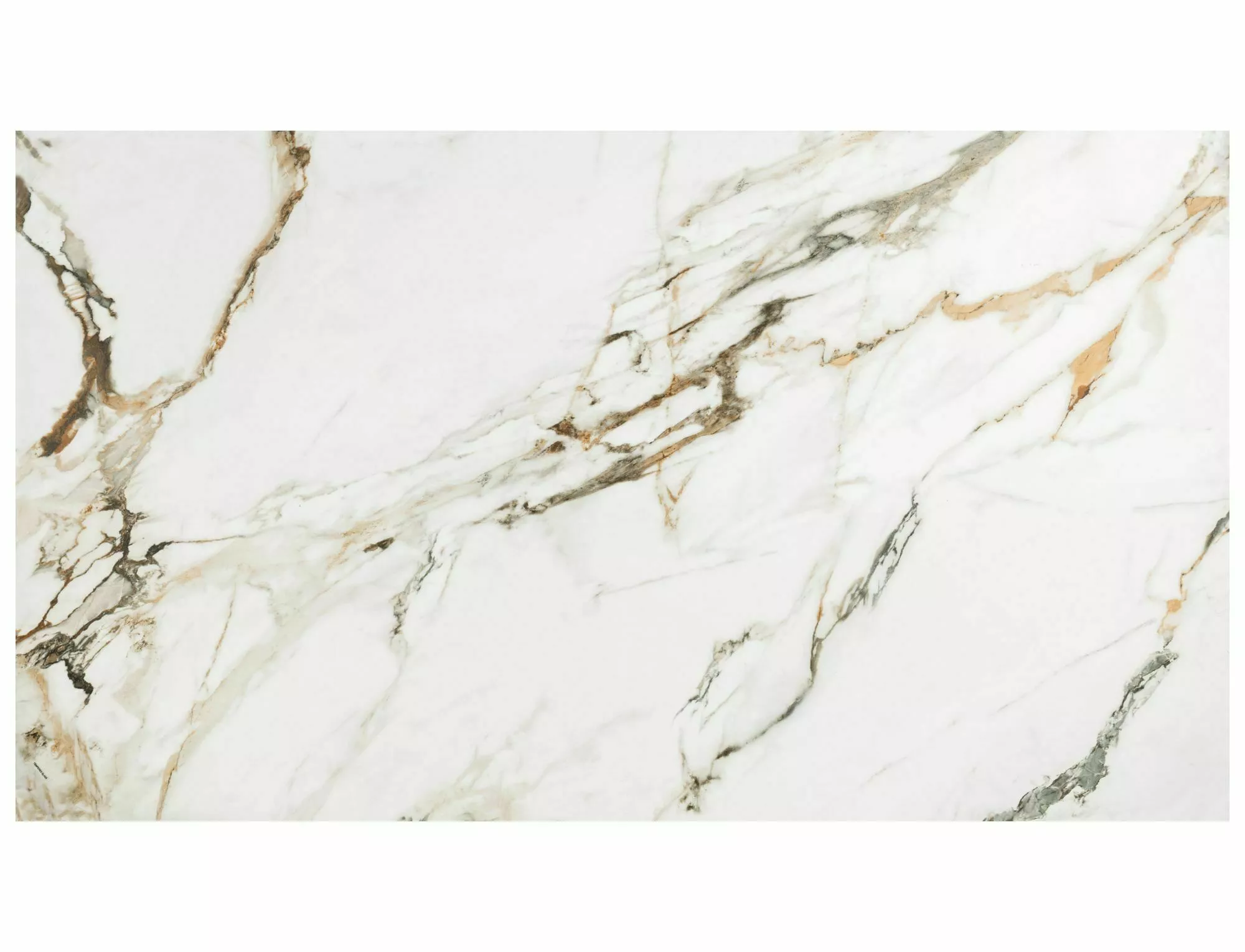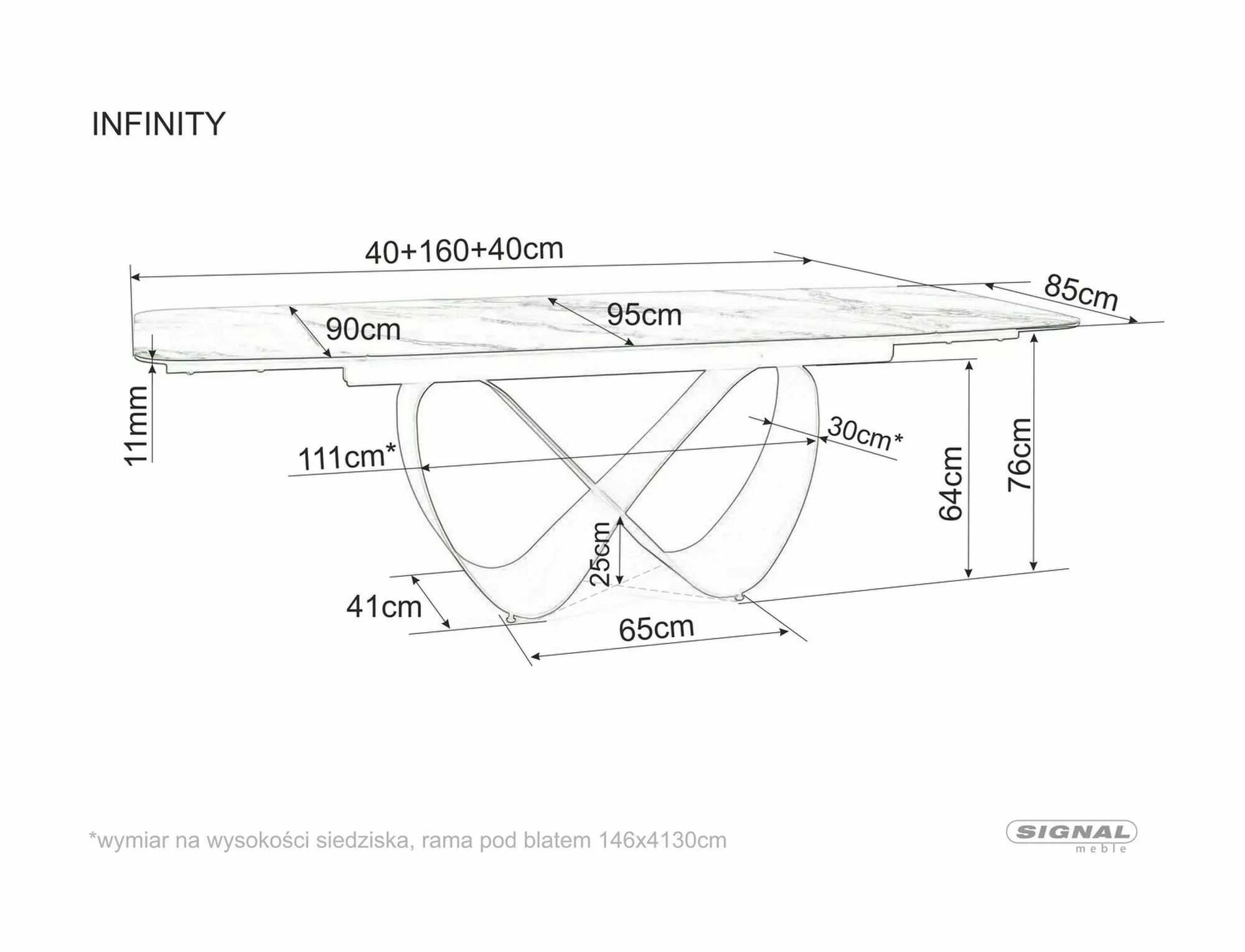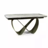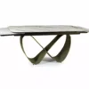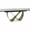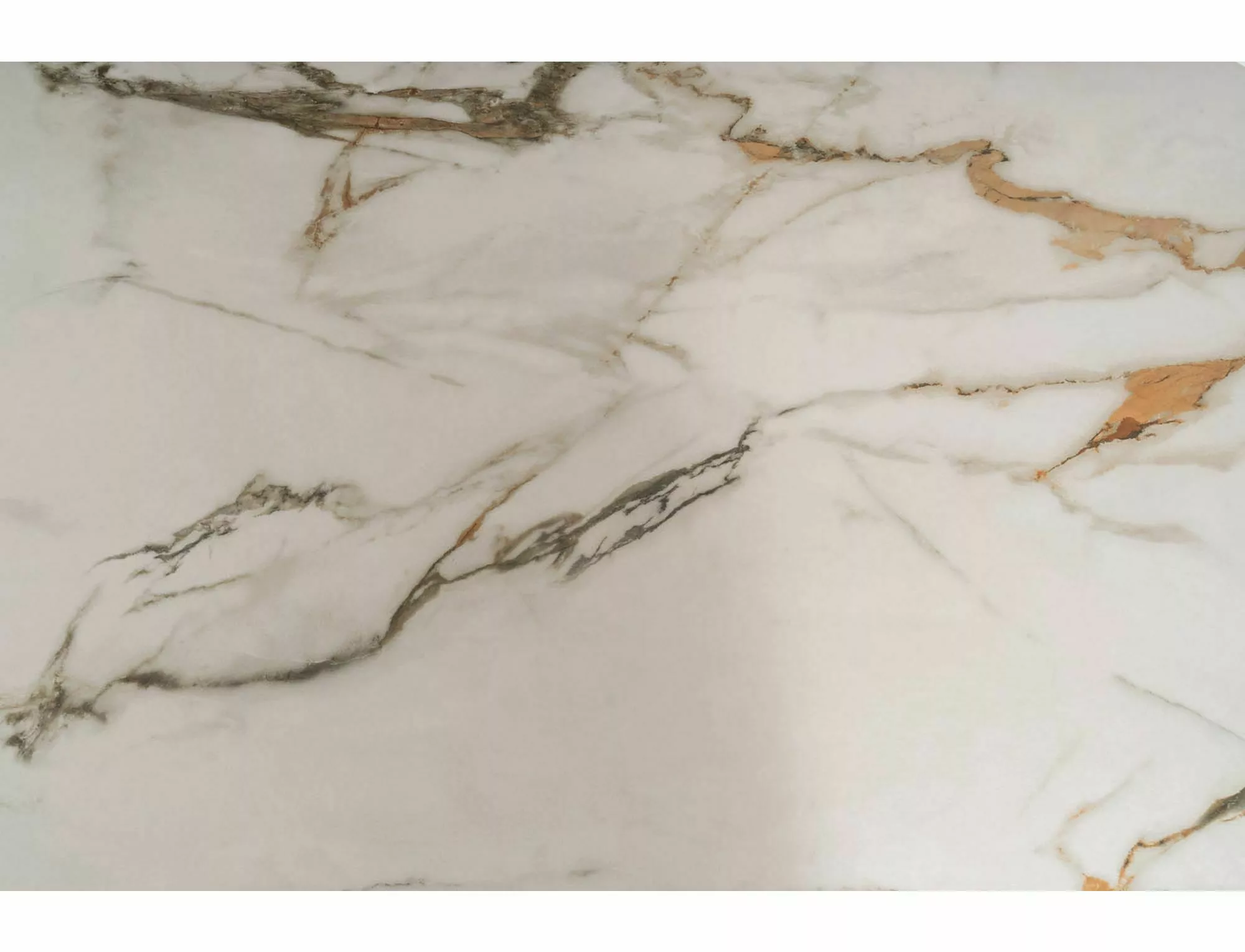 Stół rozkładany, blat: szkło hartowane + hiszpańska ceramika, AMBER BIANCO, stelaż: metal, kolor: biały / miedziany.