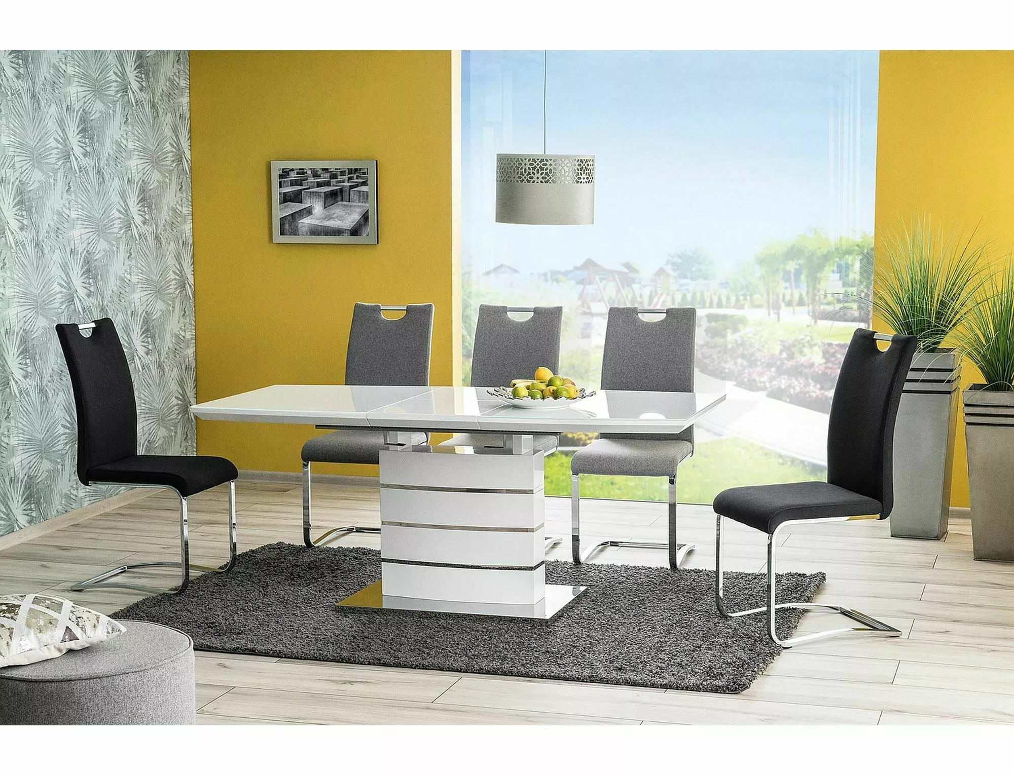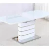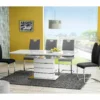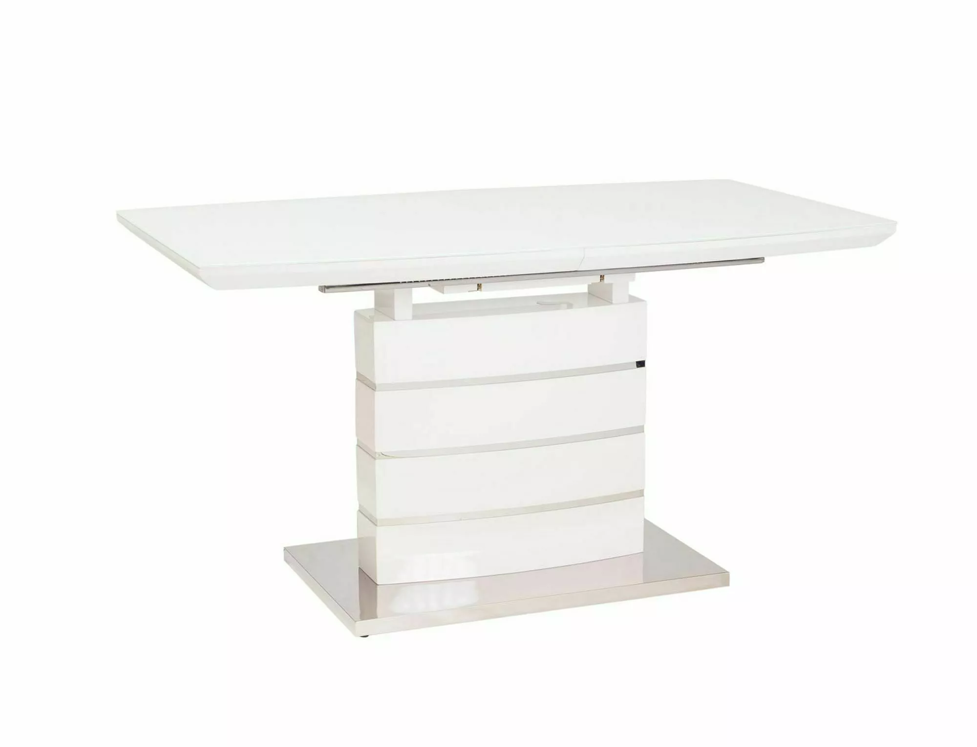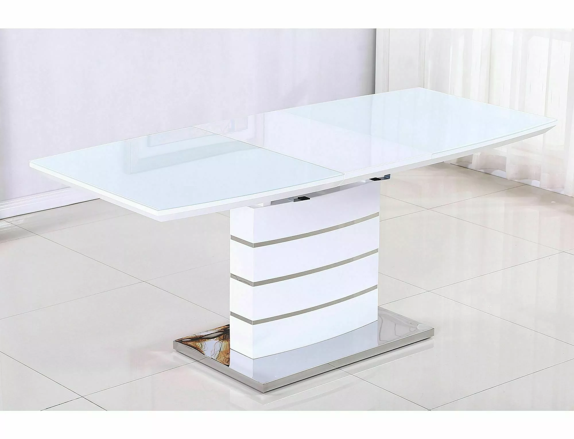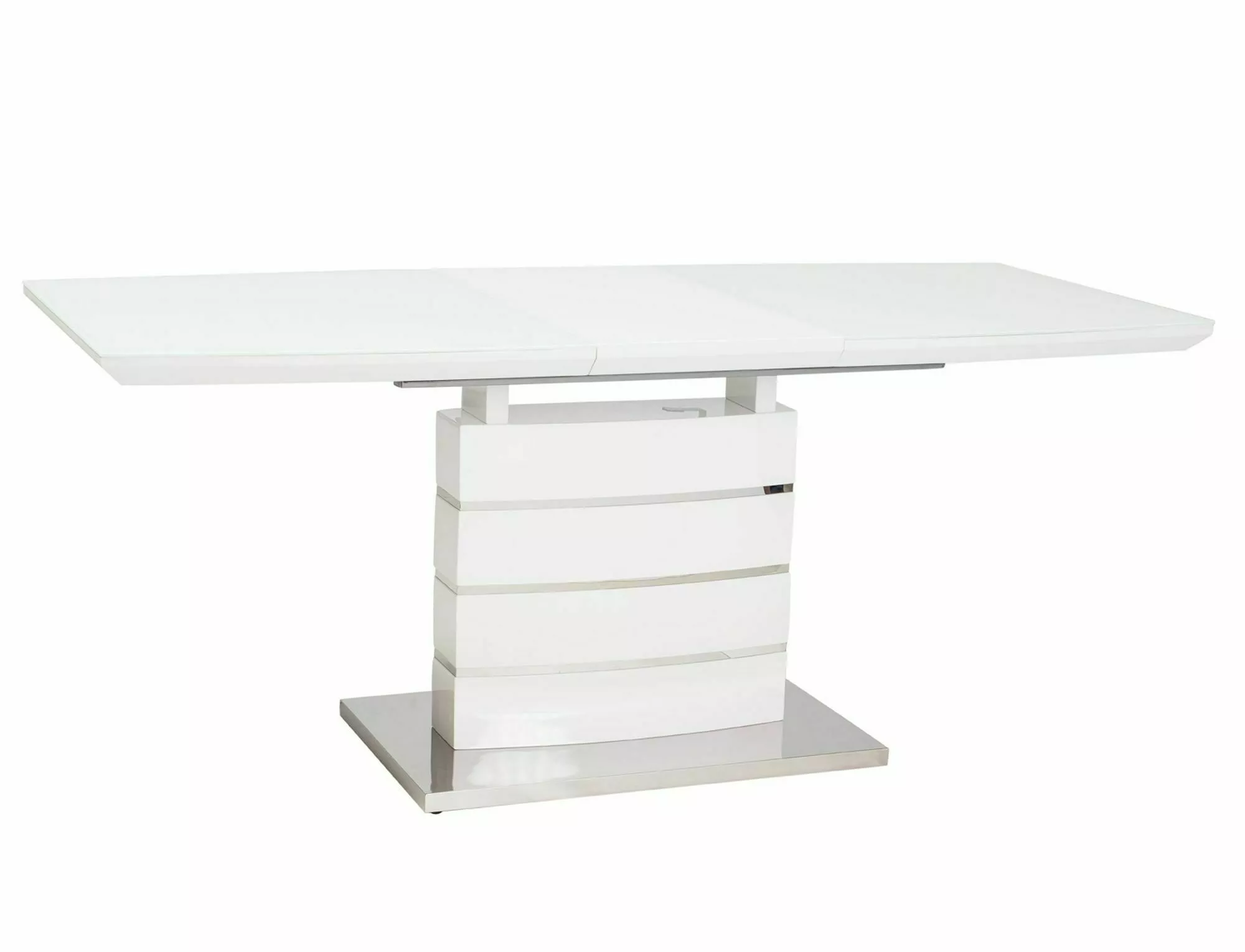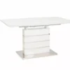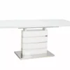 Stół rozkładany, blat: MDF+szkło hartowane, stelaż: MDF+stal nierdzewna, kolor: biały lakier.