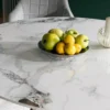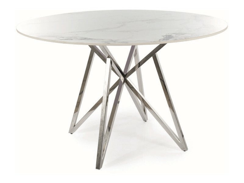 Stół, blat: ceramika, efekt marmuru, stelaż: metal, kolor: biały / chrom.