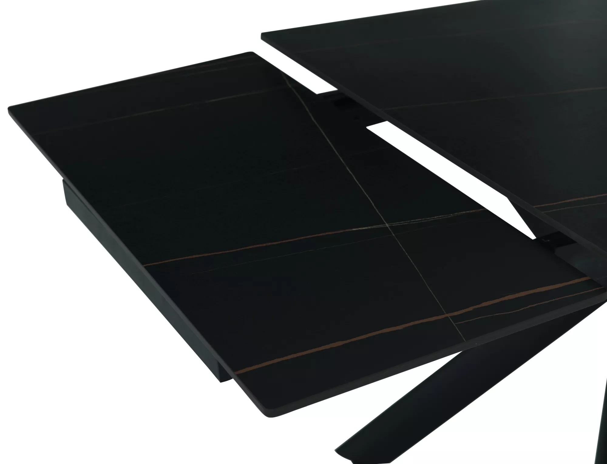 Stół rozkładany, blat: ceramika, stelaż: metal, kolor: czarny mat / czarny.