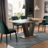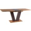 Stół rozkładany, blat: płyta laminowana, stelaż: płyta laminowana, kolor: dąb wotan / brąz. Grubość blatu 18mm.