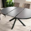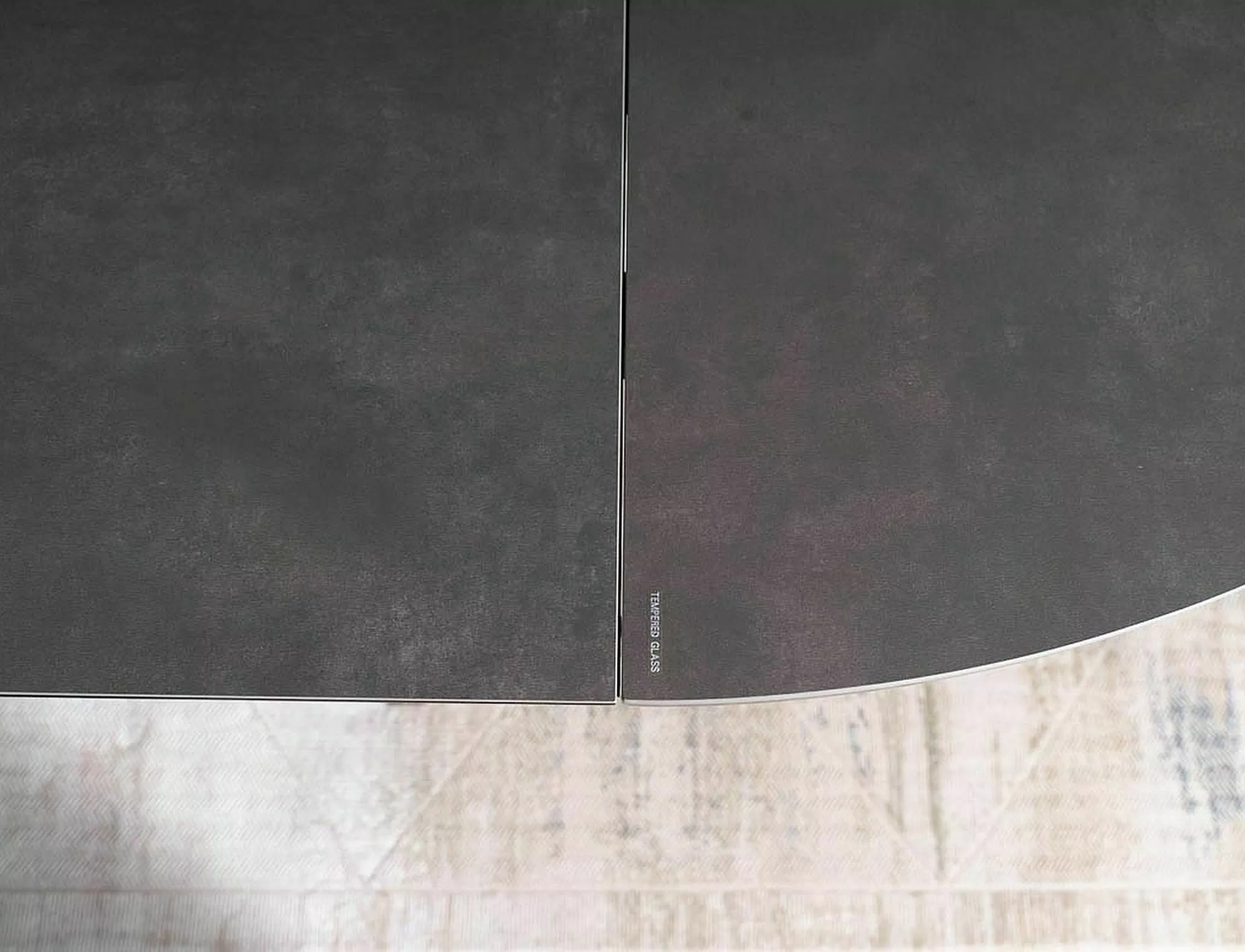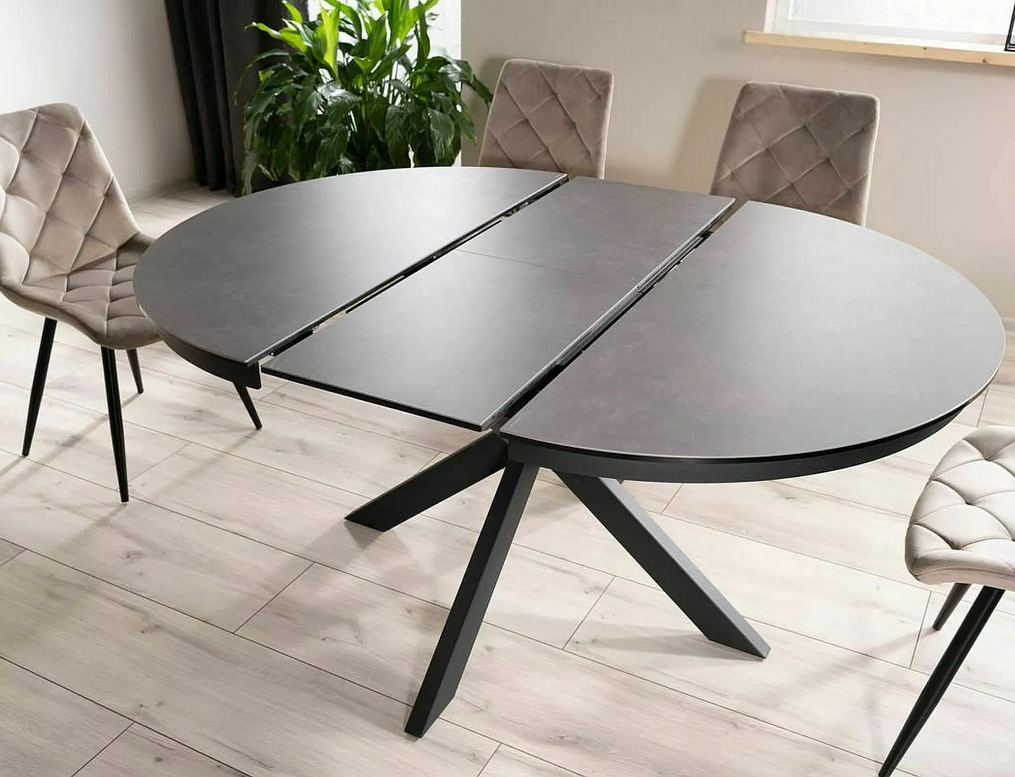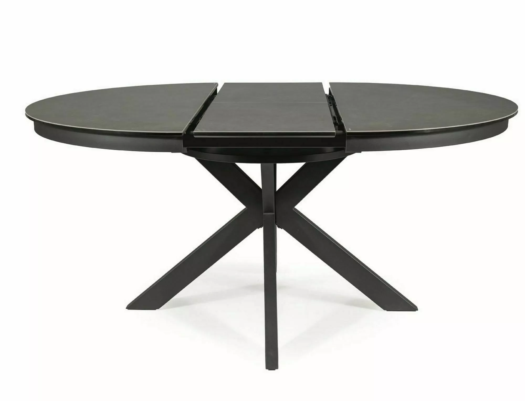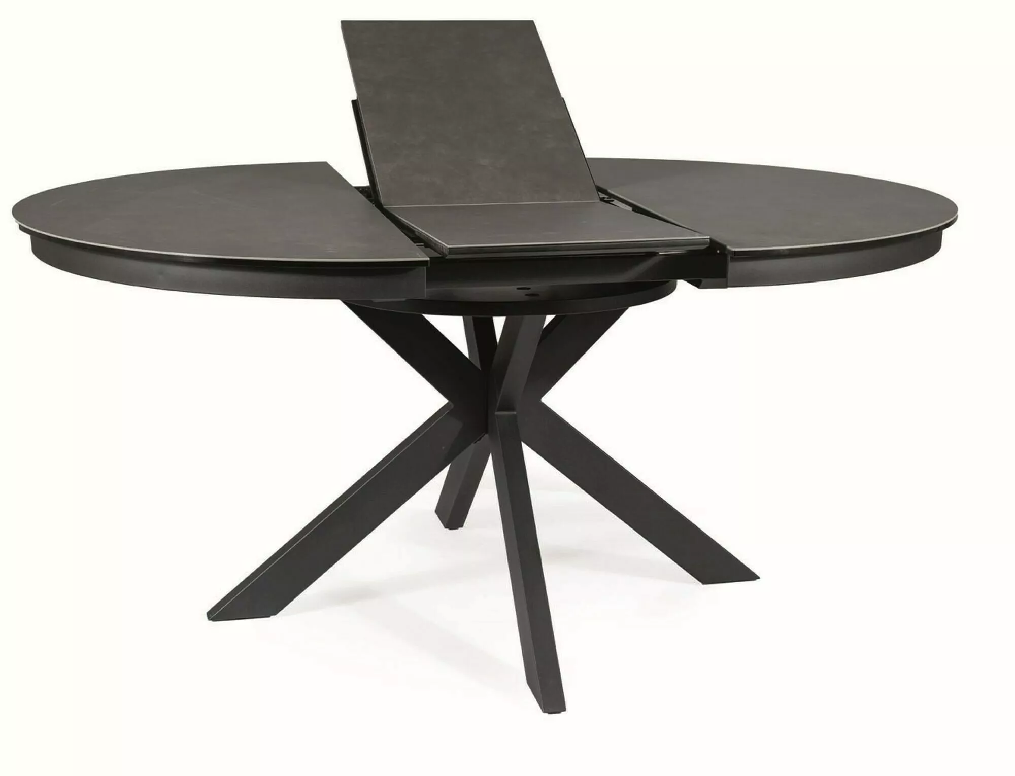 Stół rozkładany, blat: szkło hartowane + hiszpańska ceramika, CORSO GREY, stelaż: metal, kolor: ciemny szary / czarny mat. Wymiary po rozłożeniu 120x160cm.