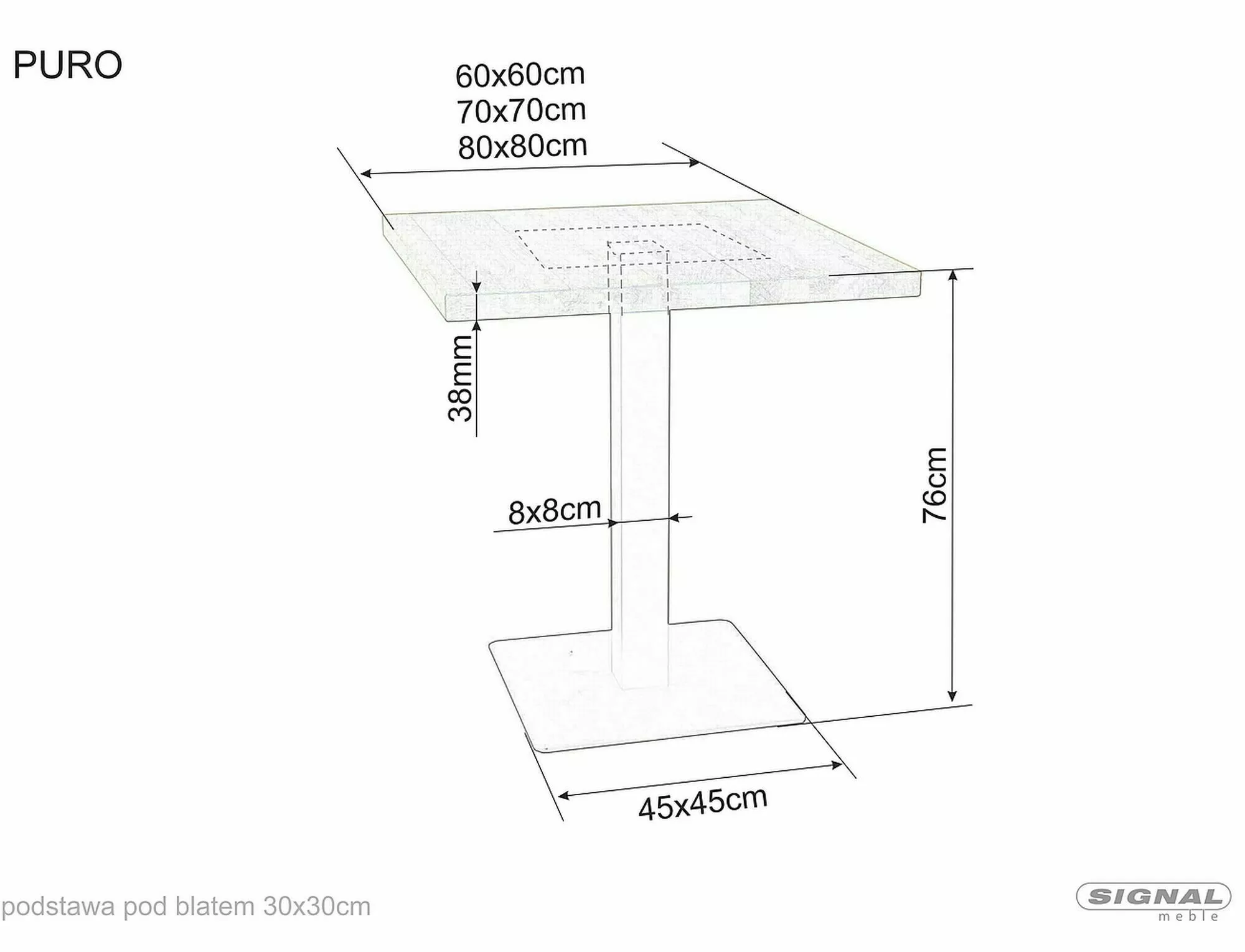 Stół, blat: okleina naturalna, stelaż: metal, kolor: dąb / czarny. Wymiar podstawy 45x45cm, profil nogi 8x8cm.