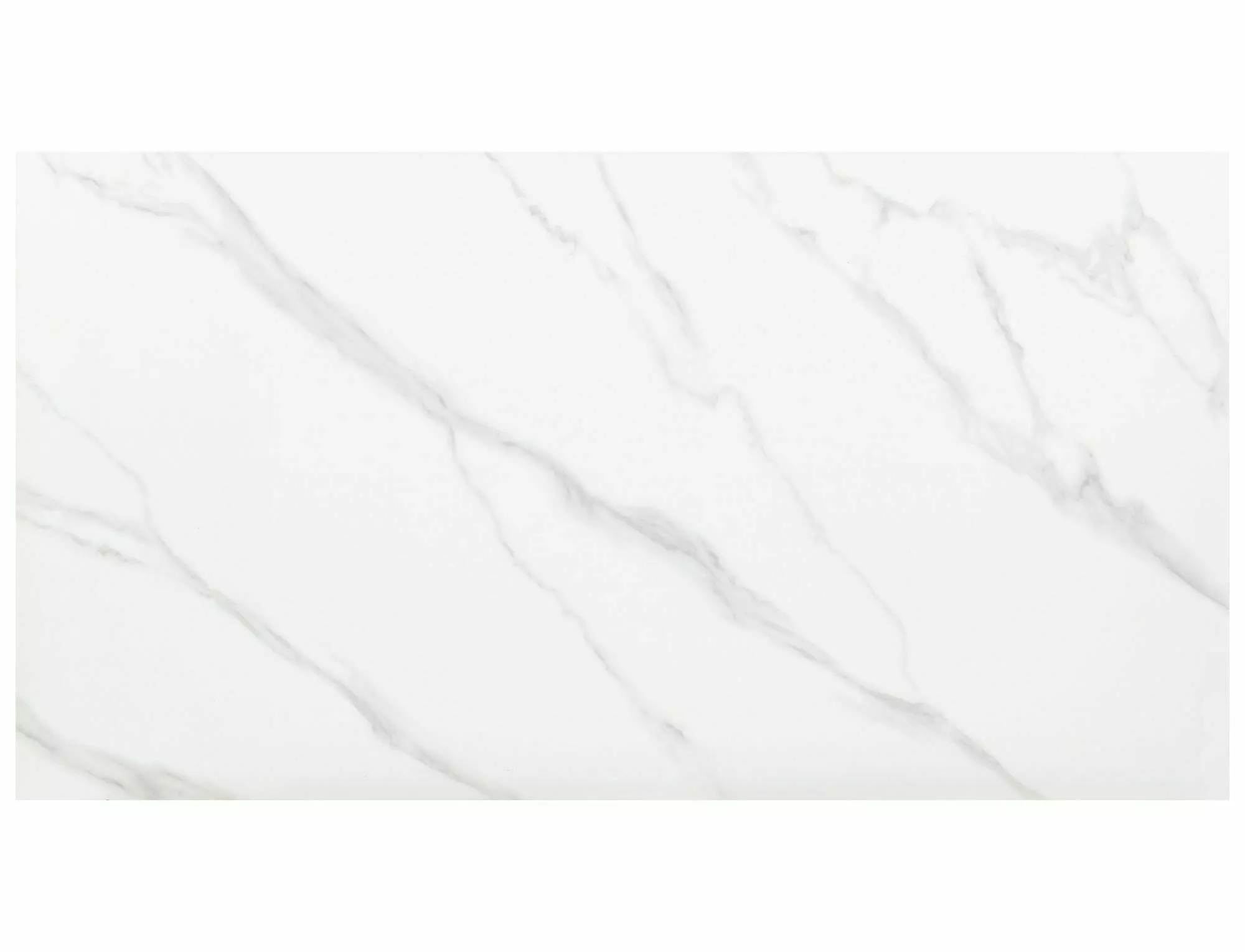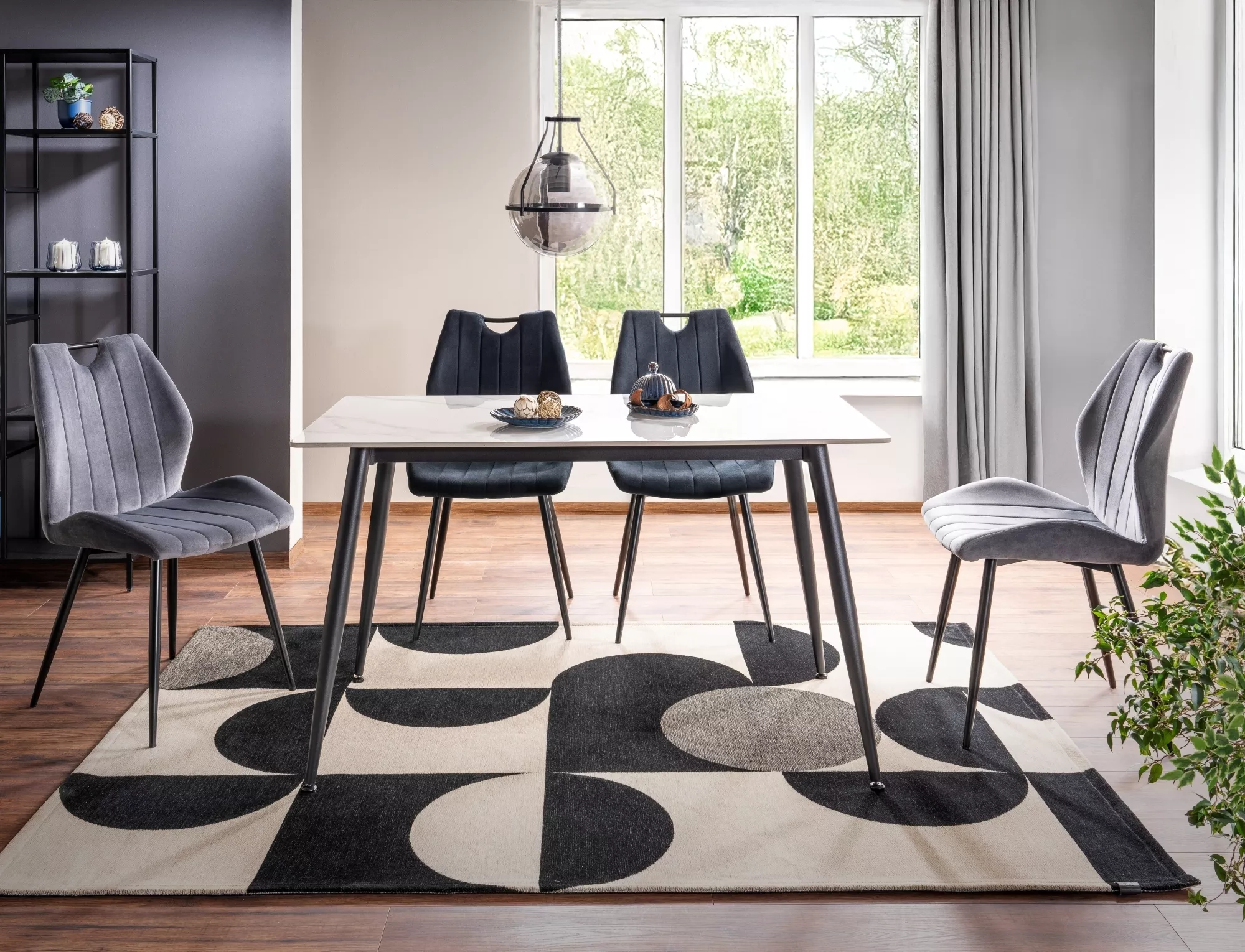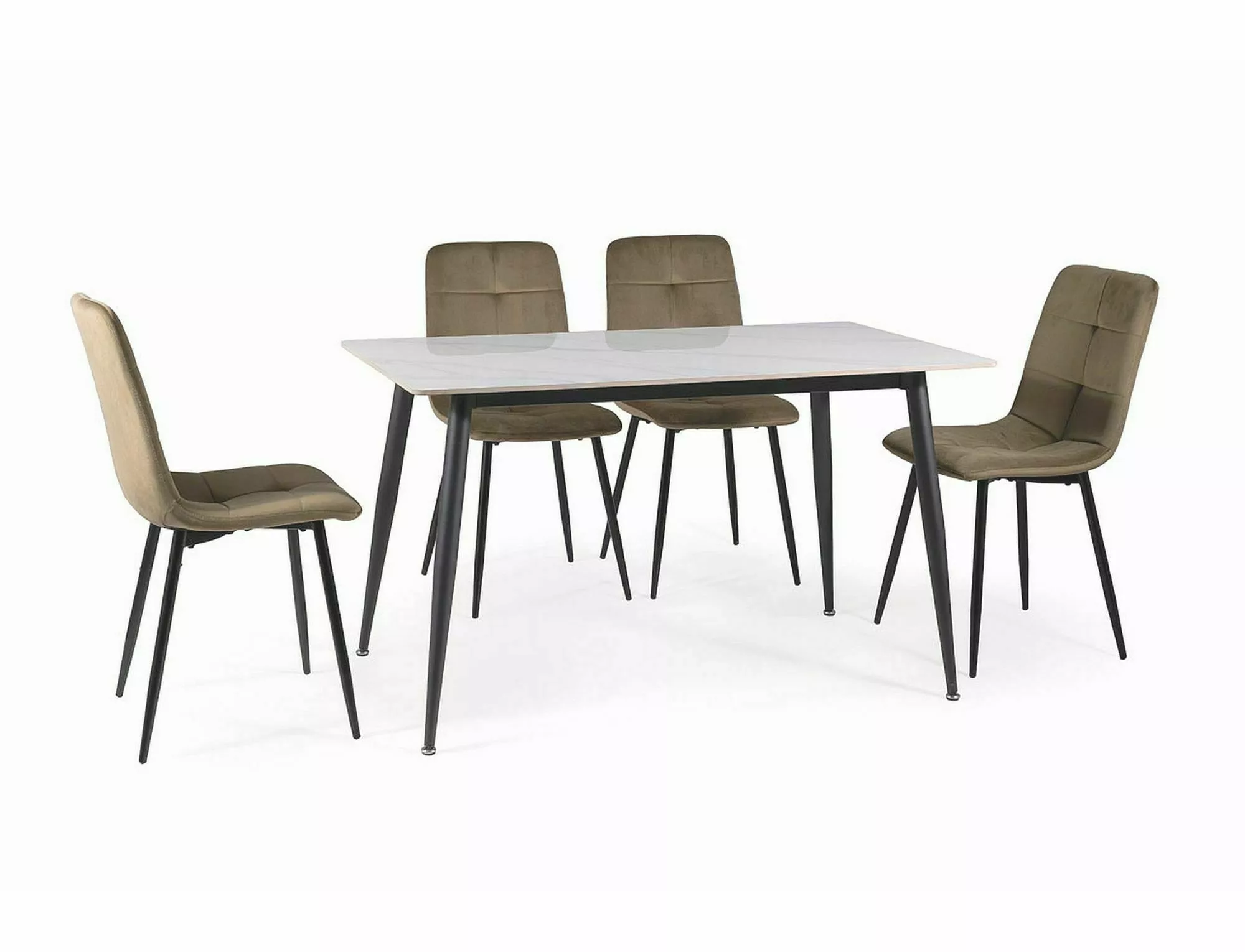 Stół, blat: ceramika, efekt marmuru, stelaż: metal, kolor: biały / czarny mat.