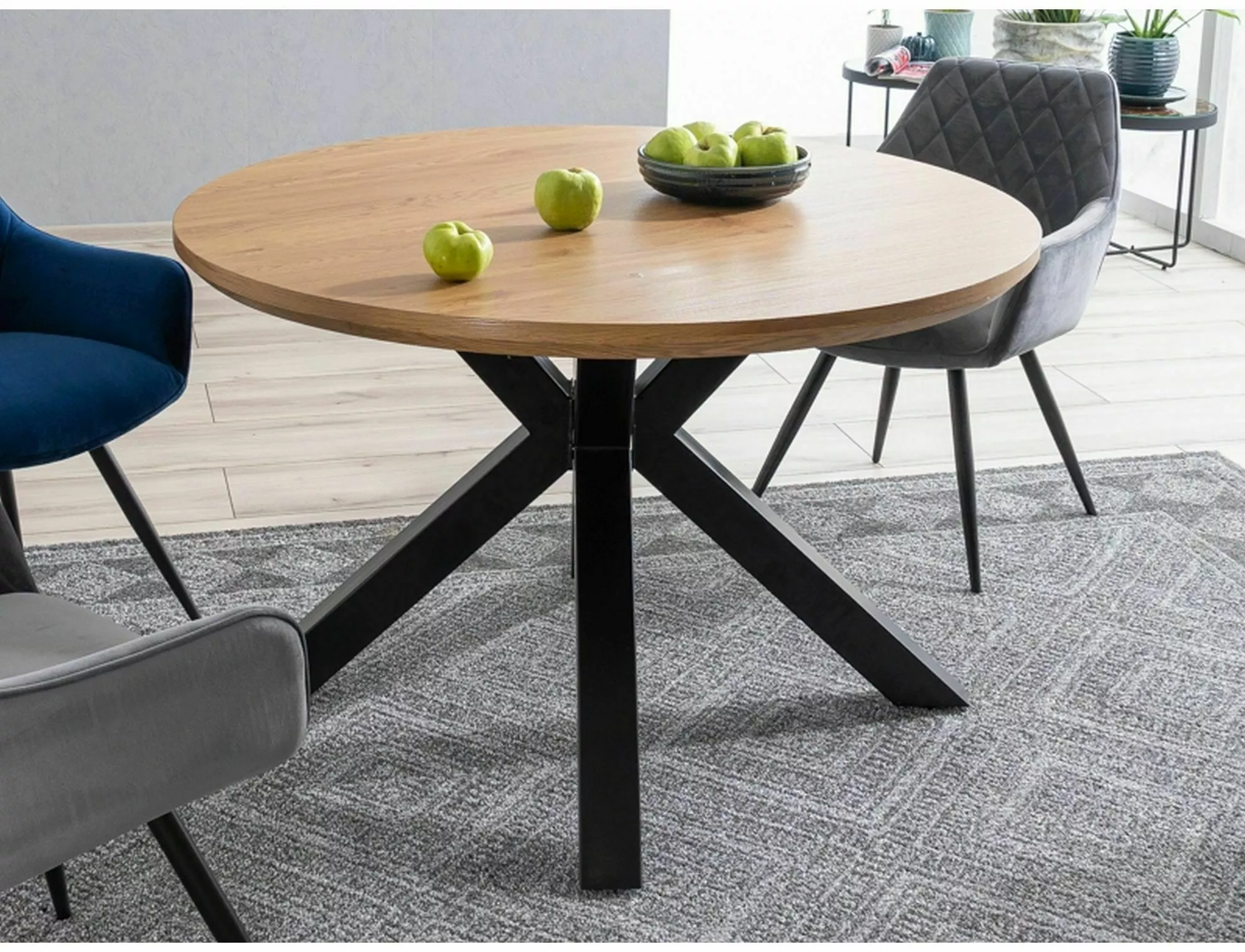 Stół, blat: okleina, stelaż: metal, kolor: dąb / czarny mat.