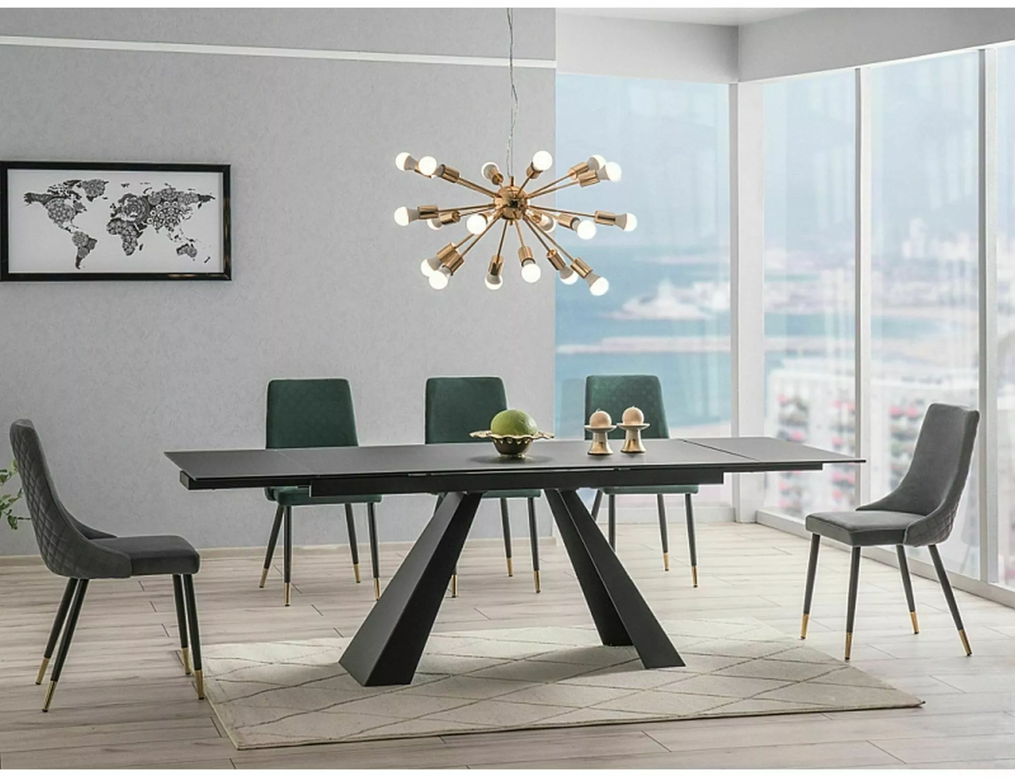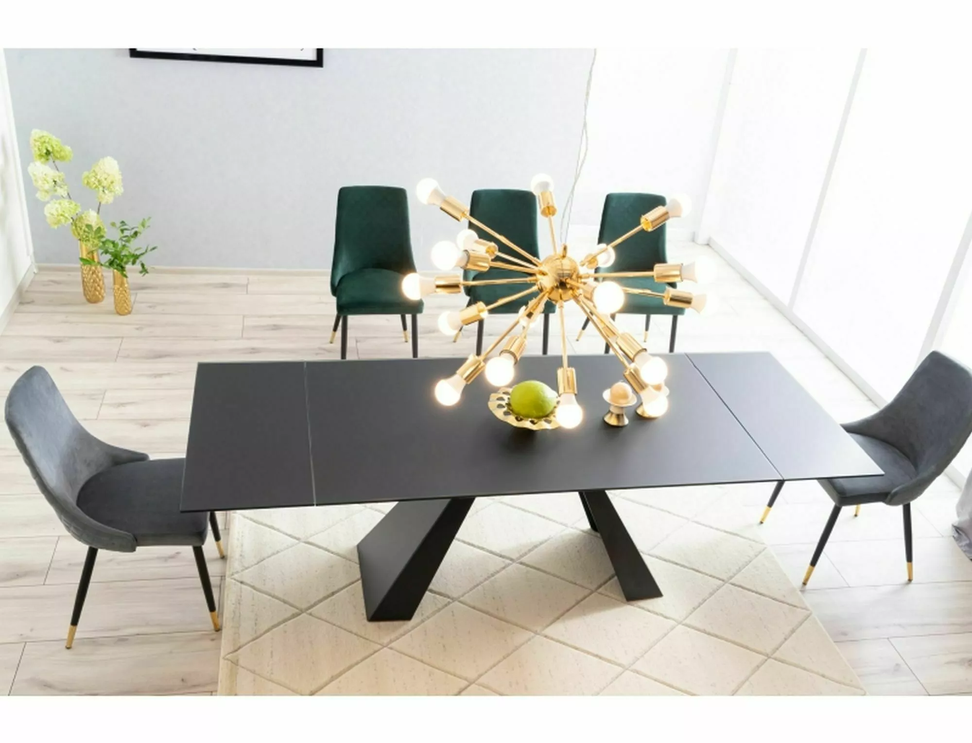 Stół rozkładany, blat: szkło hartowane, stelaż: metal, kolor: czarny mat.