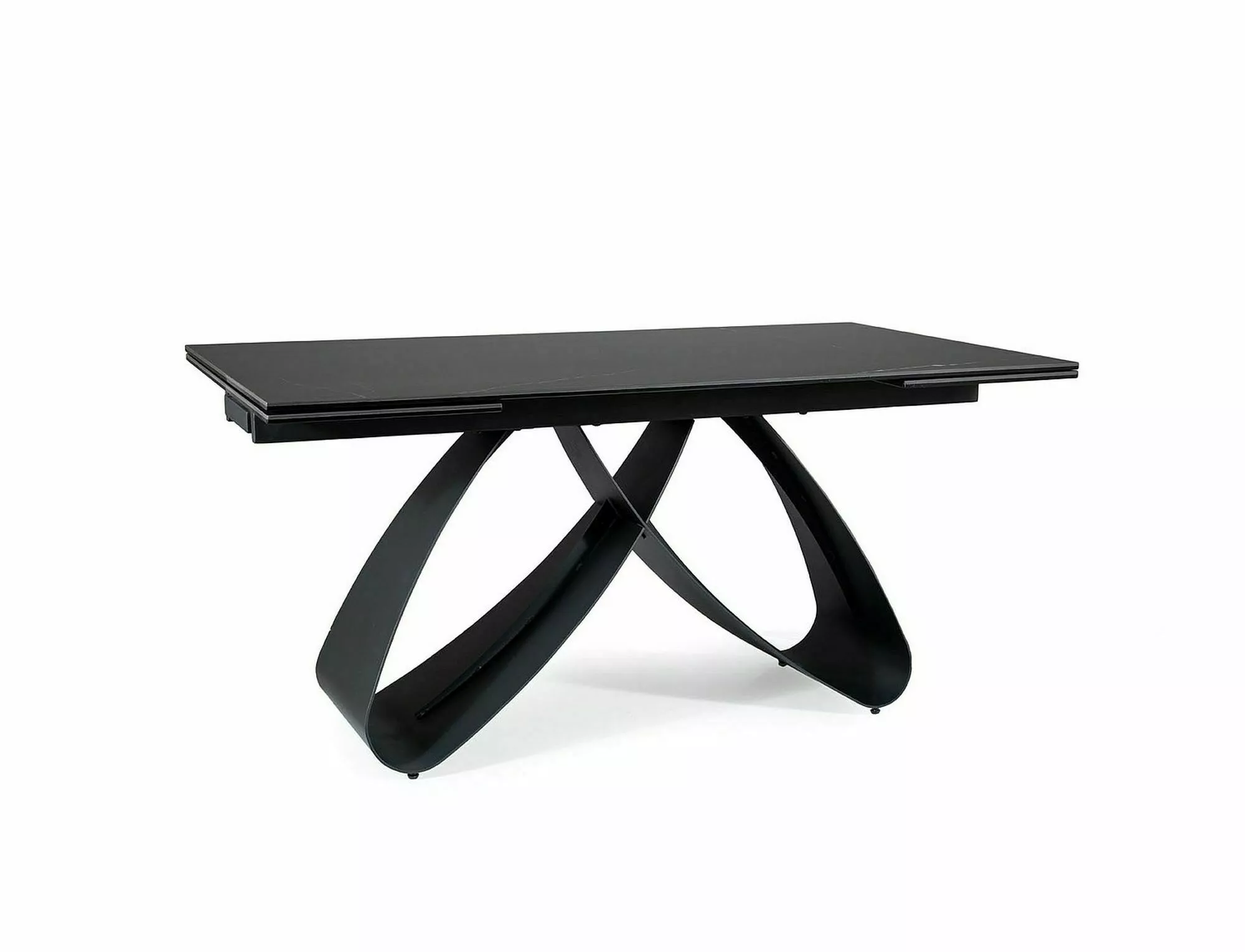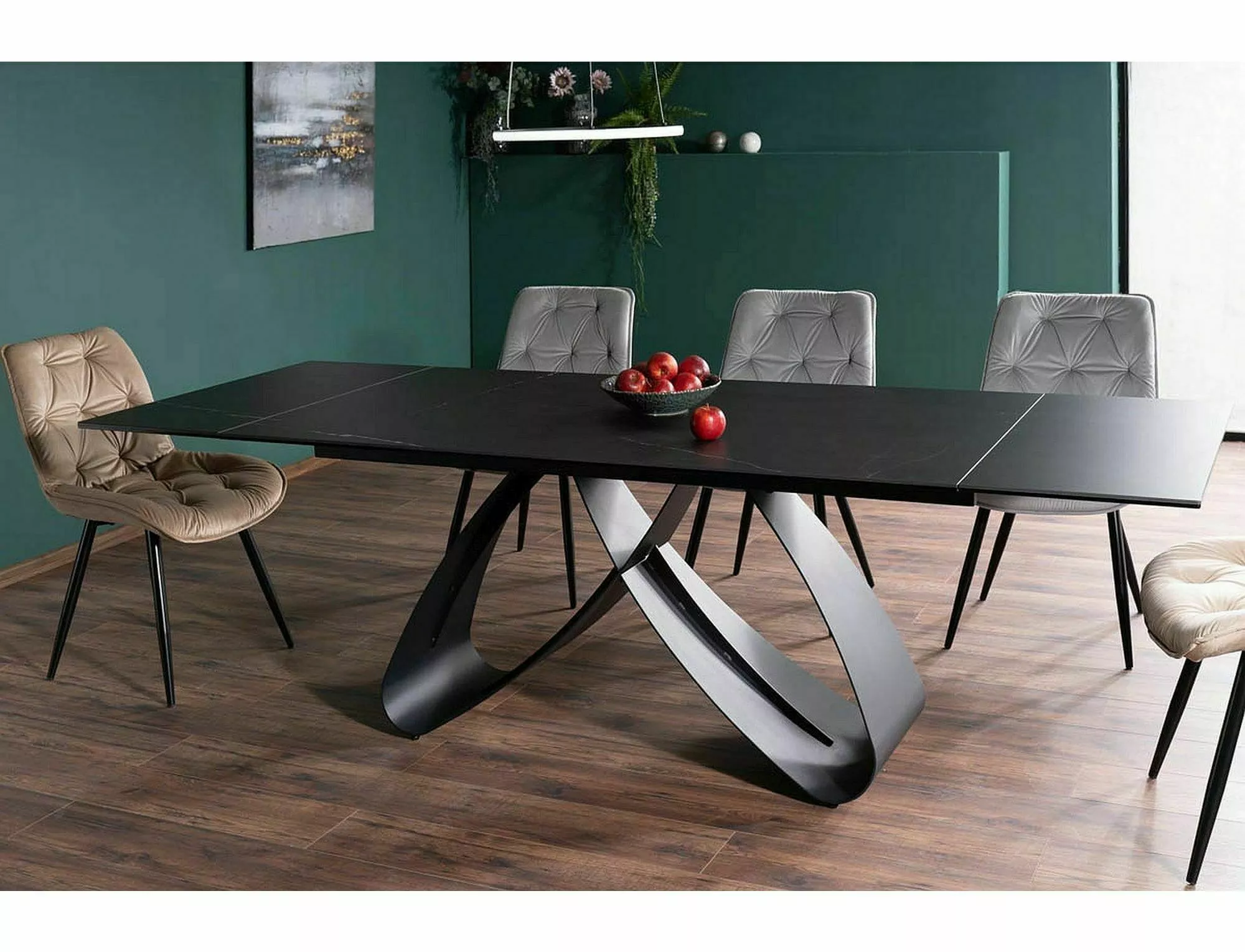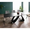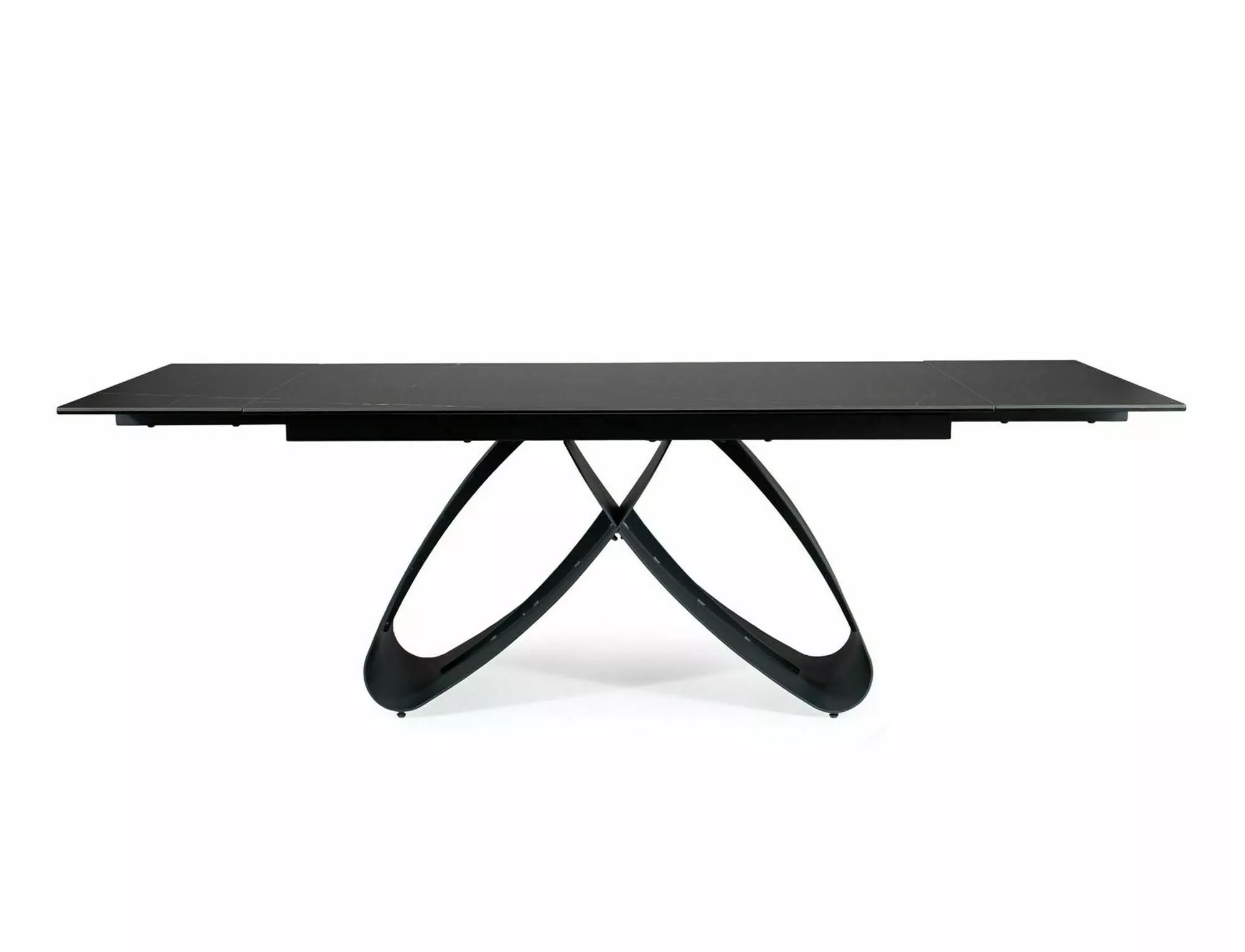 Stół rozkładany, blat: szkło hartowane + włoska ceramika, SAHARA NOIR, stelaż: metal, kolor: czarny / czarny mat.