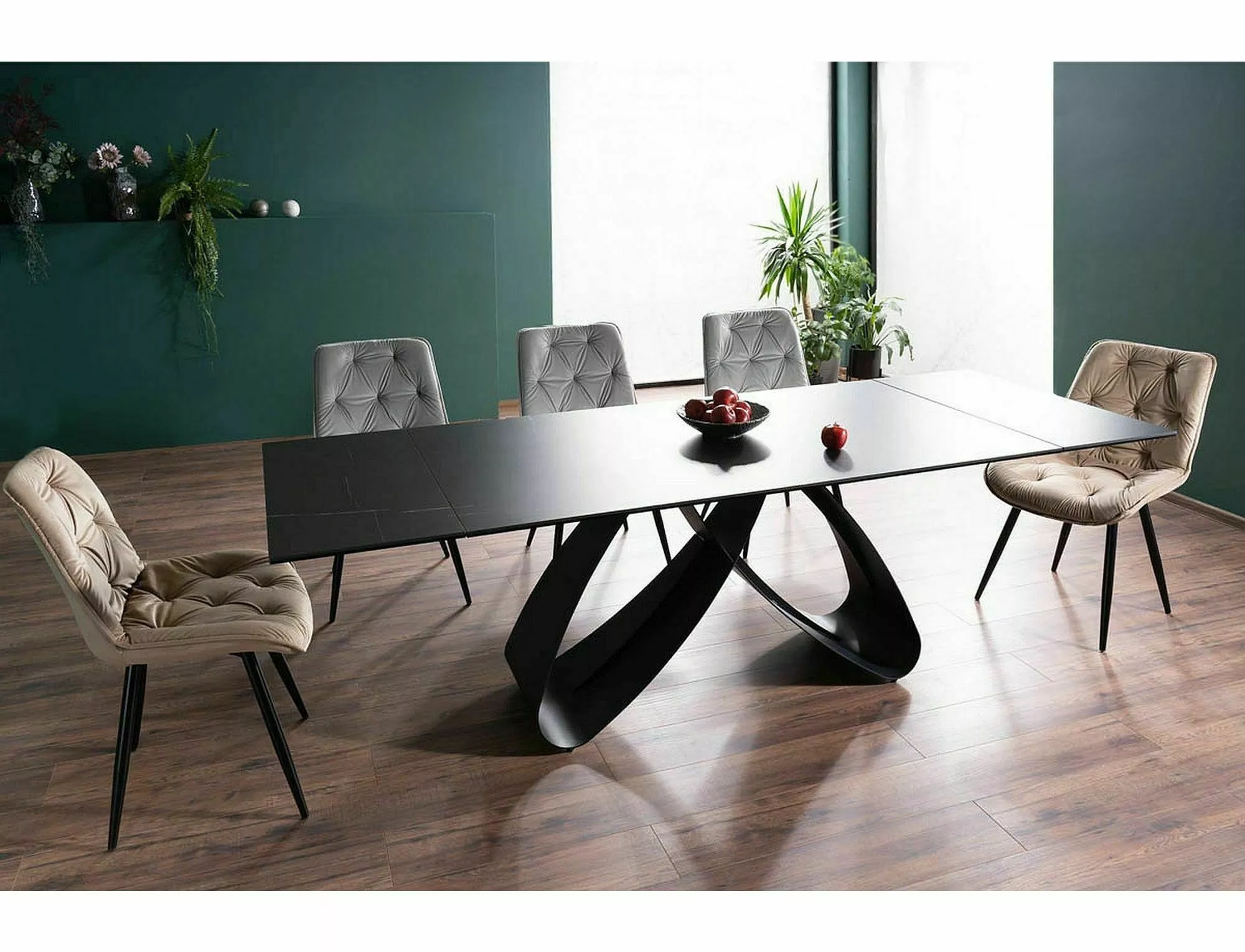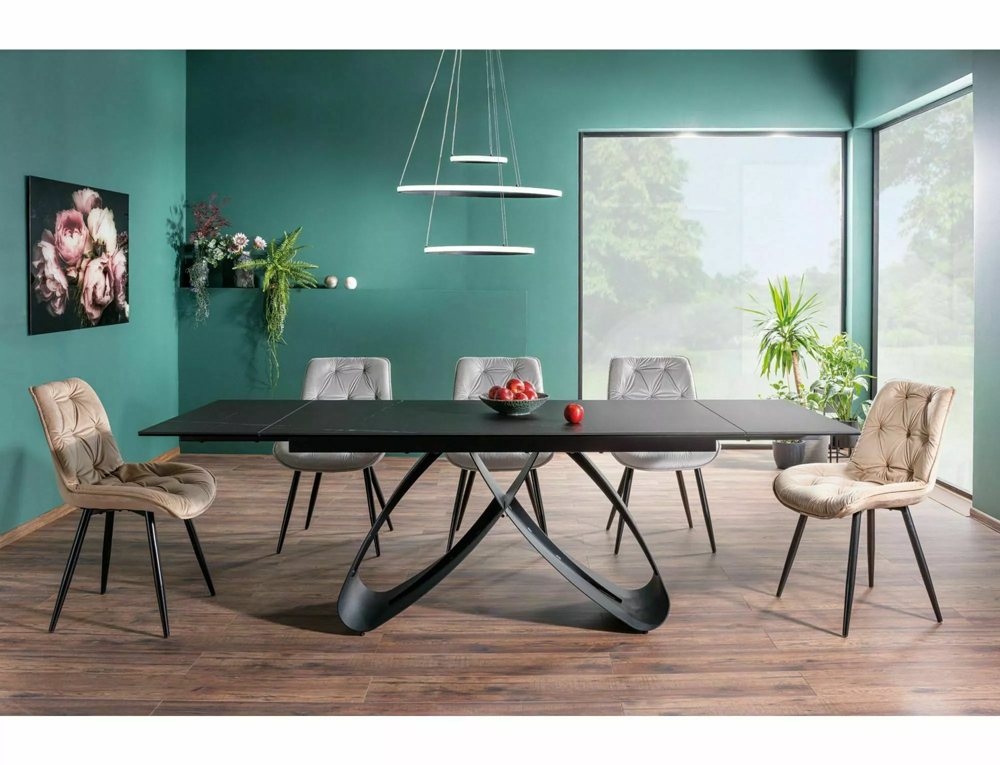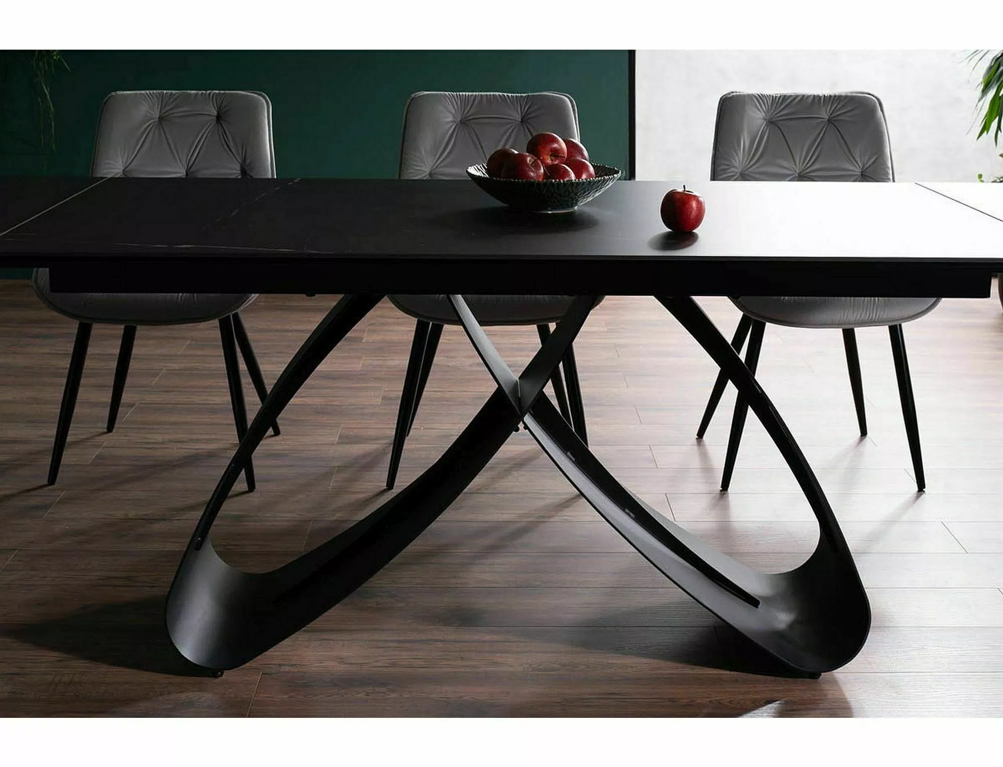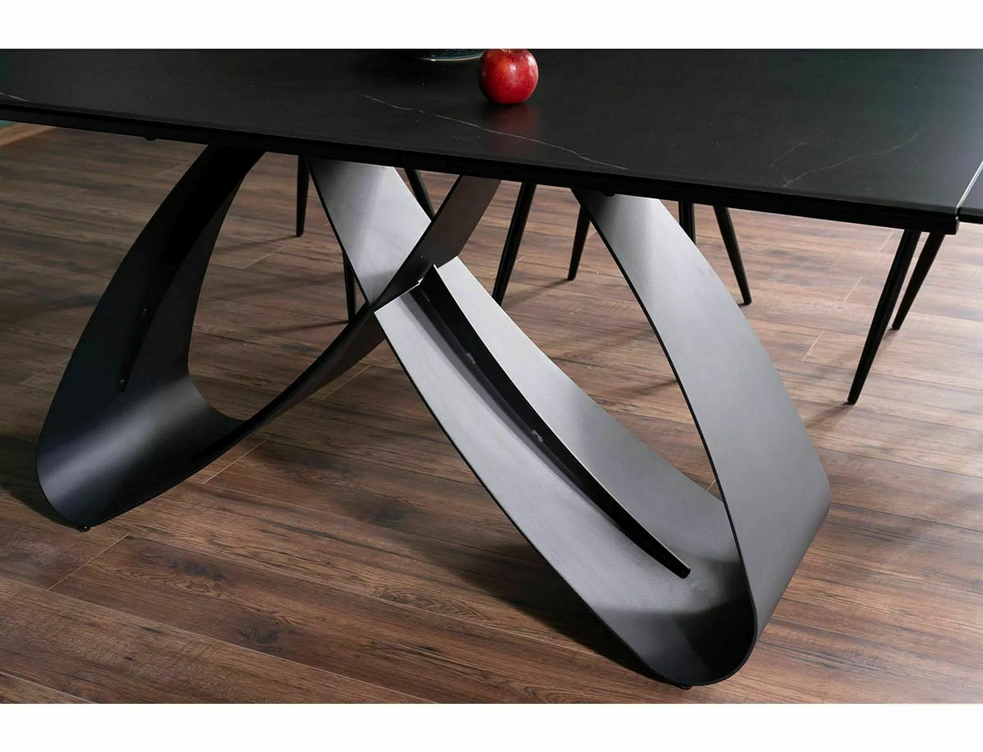 Stół rozkładany, blat: szkło hartowane + włoska ceramika, SAHARA NOIR, stelaż: metal, kolor: czarny / czarny mat.