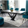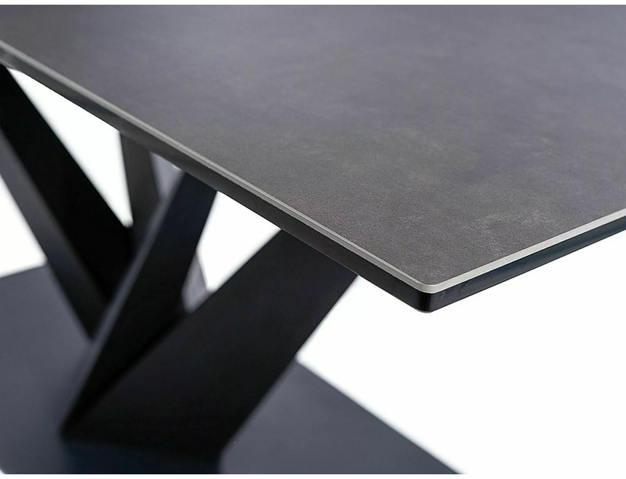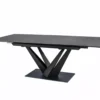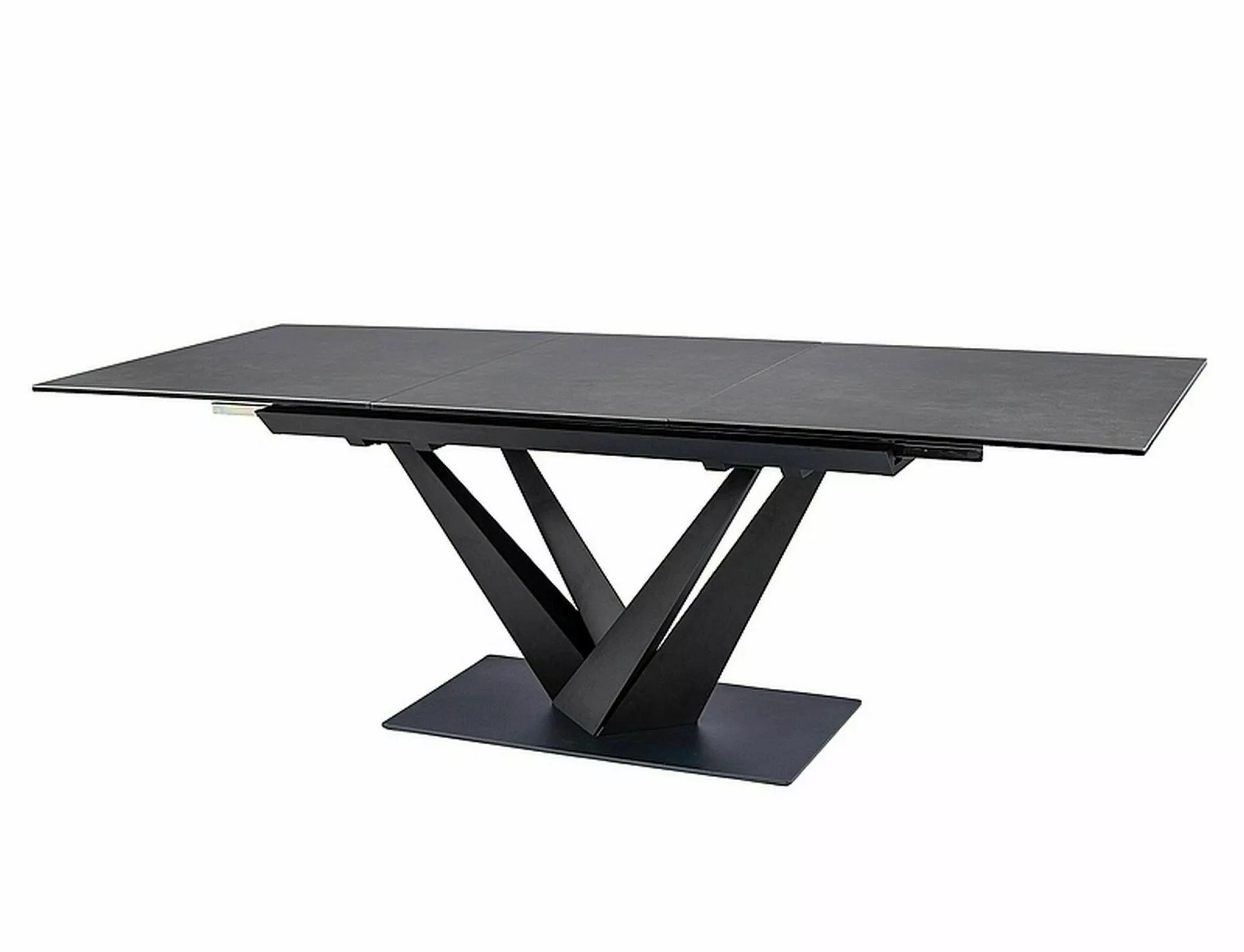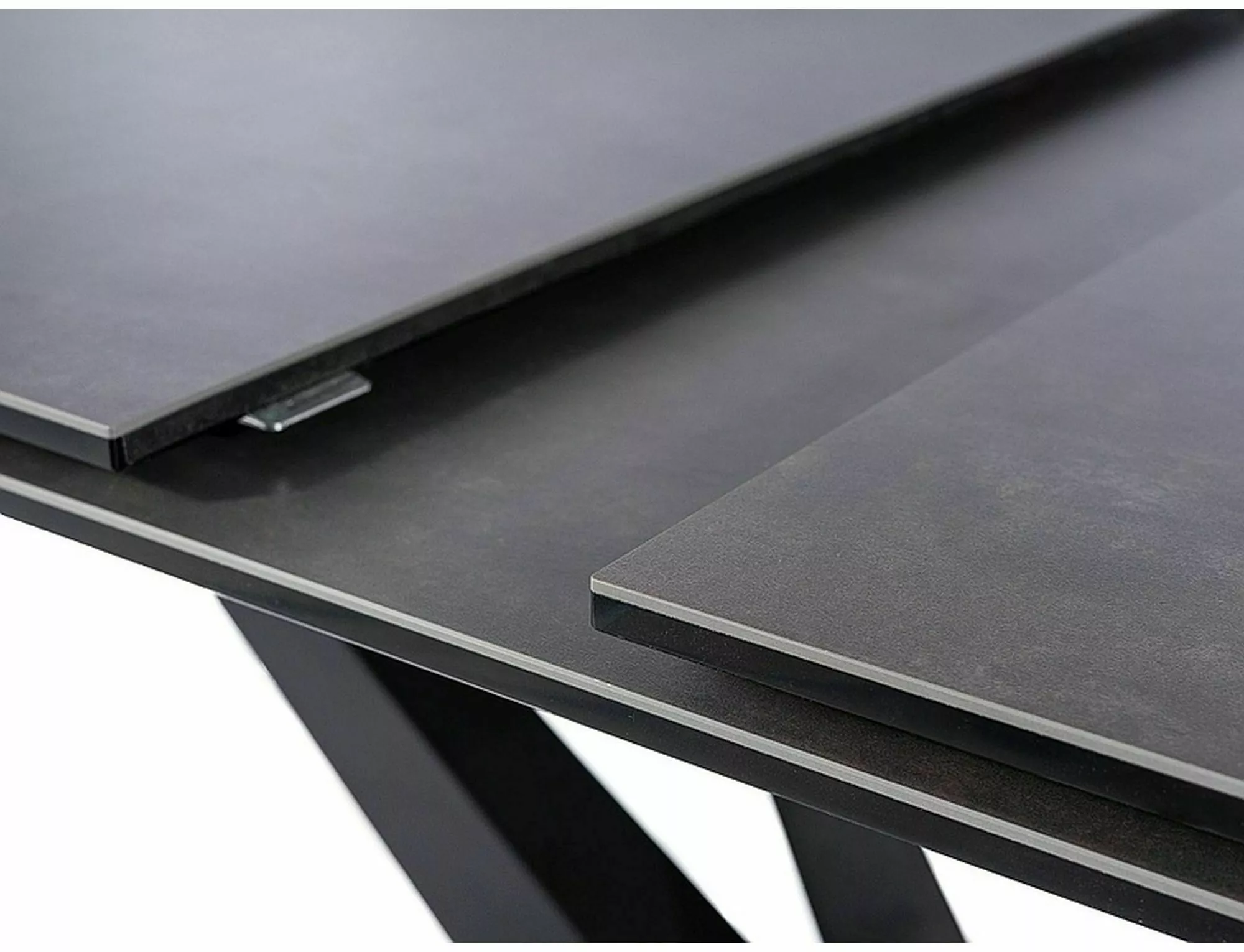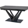 Stół rozkładany, blat: szkło hartowane + hiszpańska ceramika, efekt marmuru, stelaż: metal, kolor: ciemny szary / czarny mat.