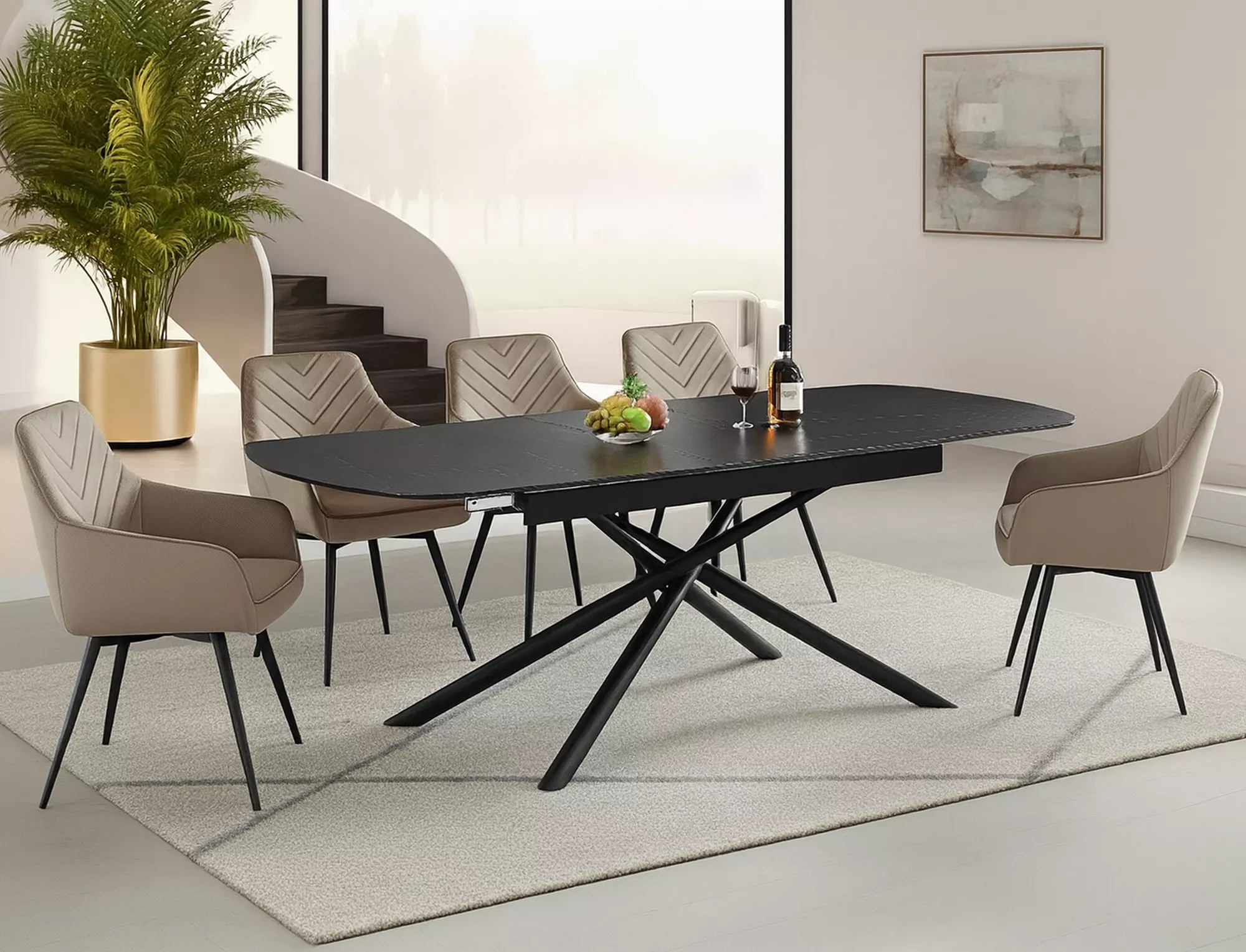 Stół rozkładany, blat: ceramika, stelaż: metal, kolor: czarny mat / czarny mat.